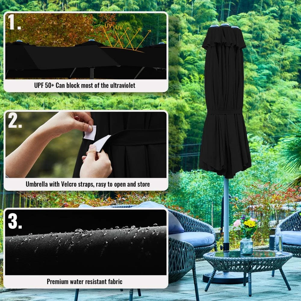 181 In. X 102 In. Dodecagon Double-Sided Market Patio Umbrella In Black