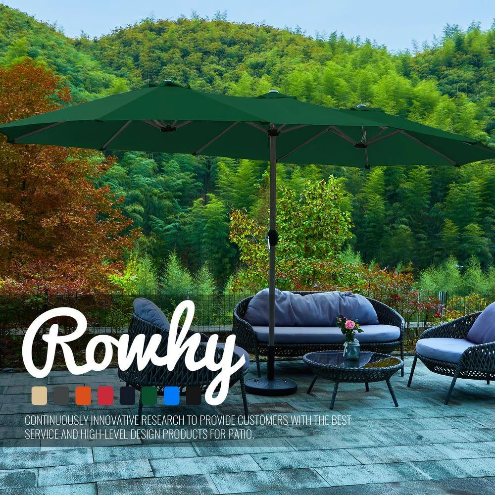 181 in. x 102 in. Dodecagon Double-sided outdoor market patio umbrella can provide greater shadows and enjoy more coolness and comfort. The fabric can block harmful ultra-violet rays and reduce the heat of the sun, thereby protecting your skin. With this umbrella, you can spend a pleasant time with your family and friends in the courtyard, beach, or swimming pool.