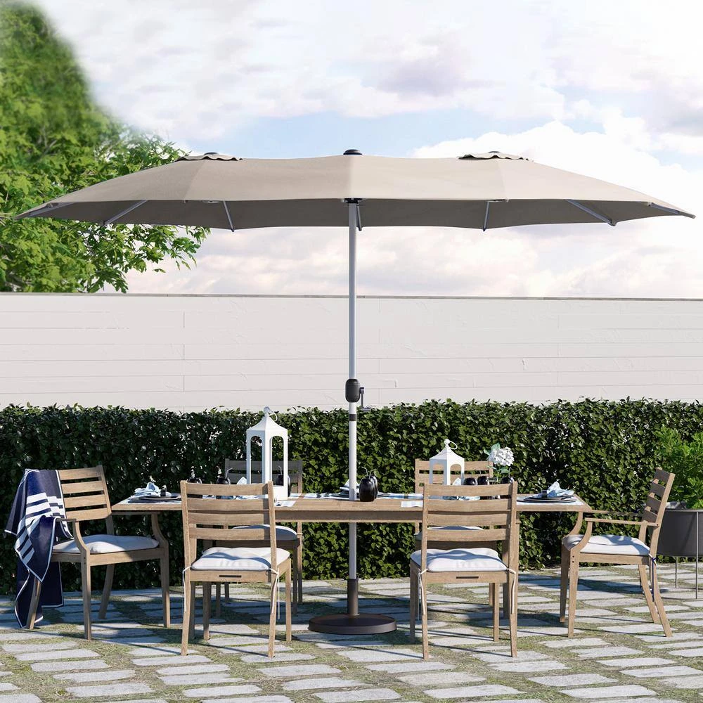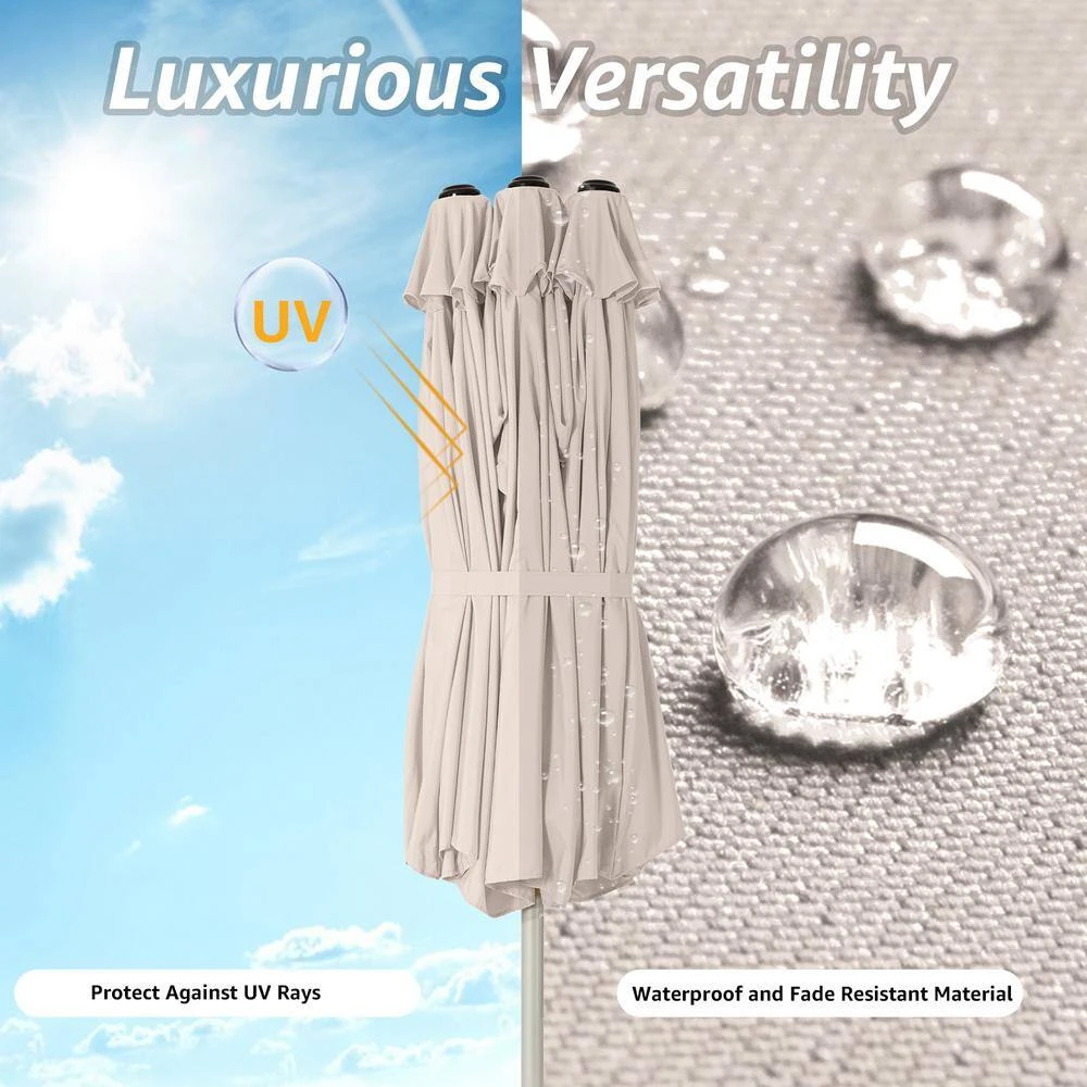 181” x 102” Dodecagon Double-sided outdoor market patio umbrella can provide greater shadows and enjoy more coolness and comfort. The fabric can block harmful ultraviolet rays and reduce the heat of the sun, thereby protecting your skin. With this umbrella, you can spend a pleasant time with your family and friends in the courtyard, beach, or swimming pool.