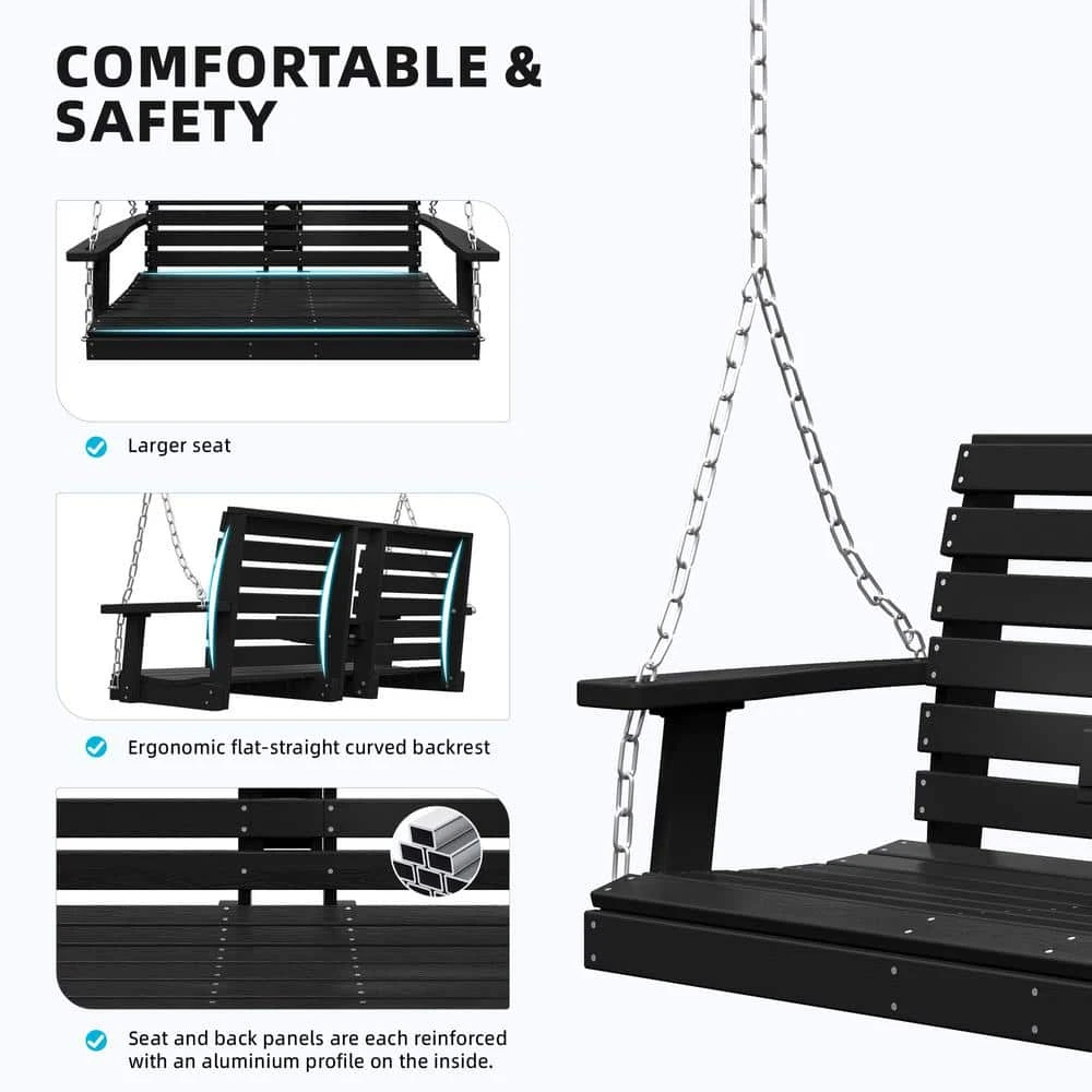 - Seats up to 2: our front porch swing has a wide seat and a 660 lbs. W capacity, so 2-people can easily sit together and enjoy your time outside and this wooden porch swing is also an excellent addition to your porch, backyard, patio, garden or Sunroom