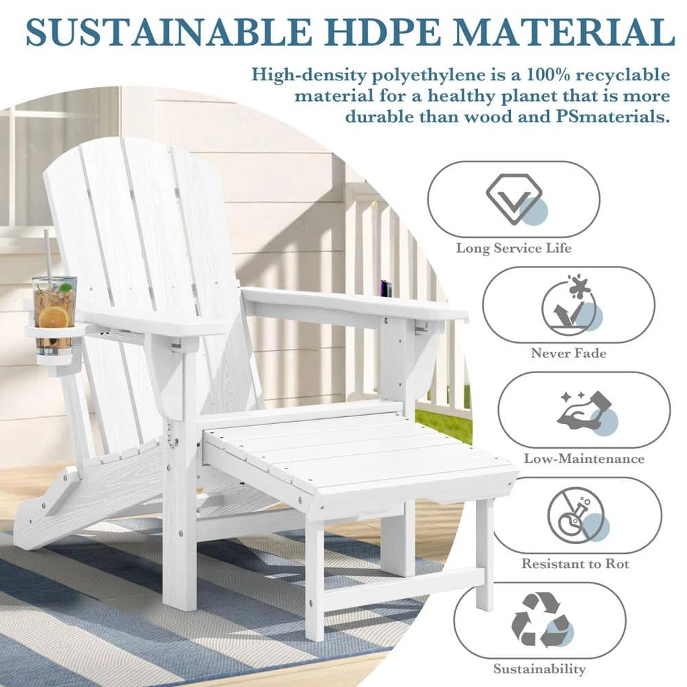 - 3-in-1 multifunctional chair: the Jearey 3-in-1 adirondack chair is an innovative version that combines the features of a folding adirondack chair and retractable ottoman, it also comes with a double-sided cup holder and a retractable footrest, seamlessly integrating technology and convenience