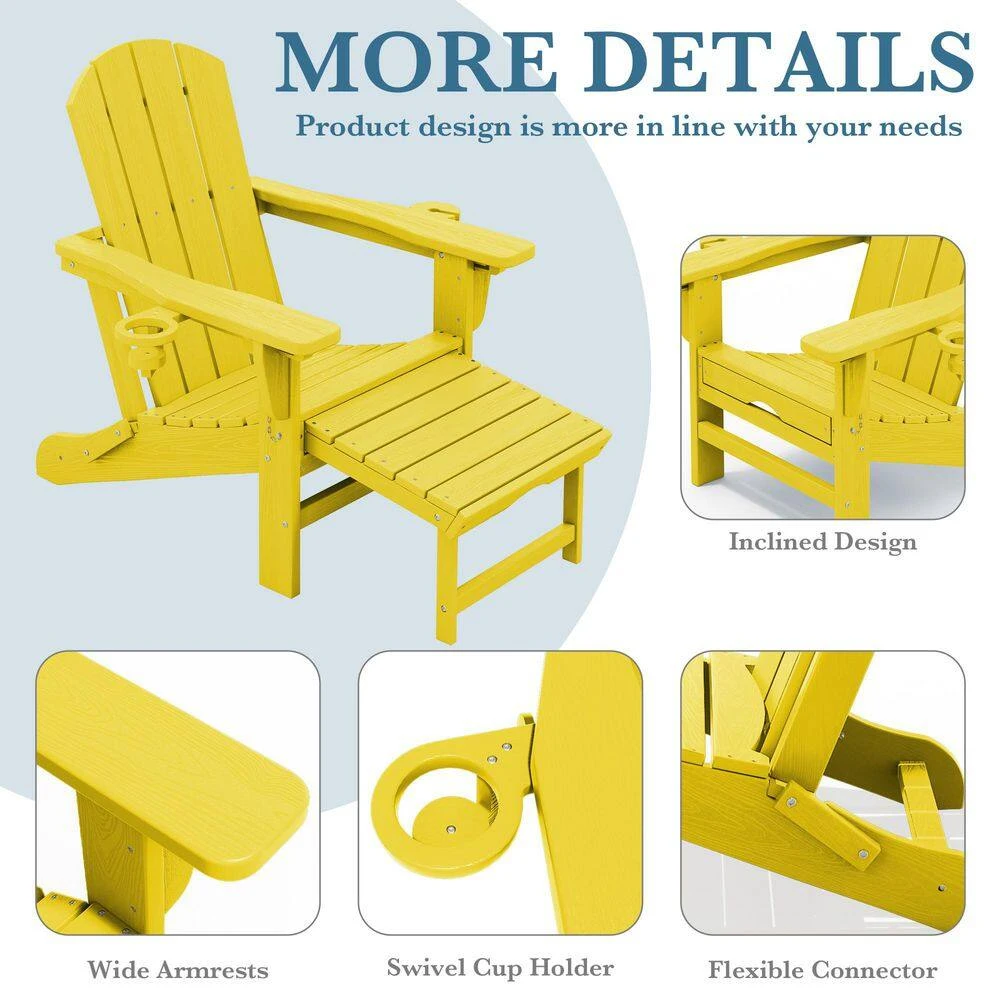 - 3-in-1 multifunctional chair: the jearey 3-in-1 adirondack chair is an innovative version that combines the features of a folding adirondack chair and retractable ottoman, it also comes with a double-sided cup holder and a retractable footrest, seamlessly integrating technology and convenience
