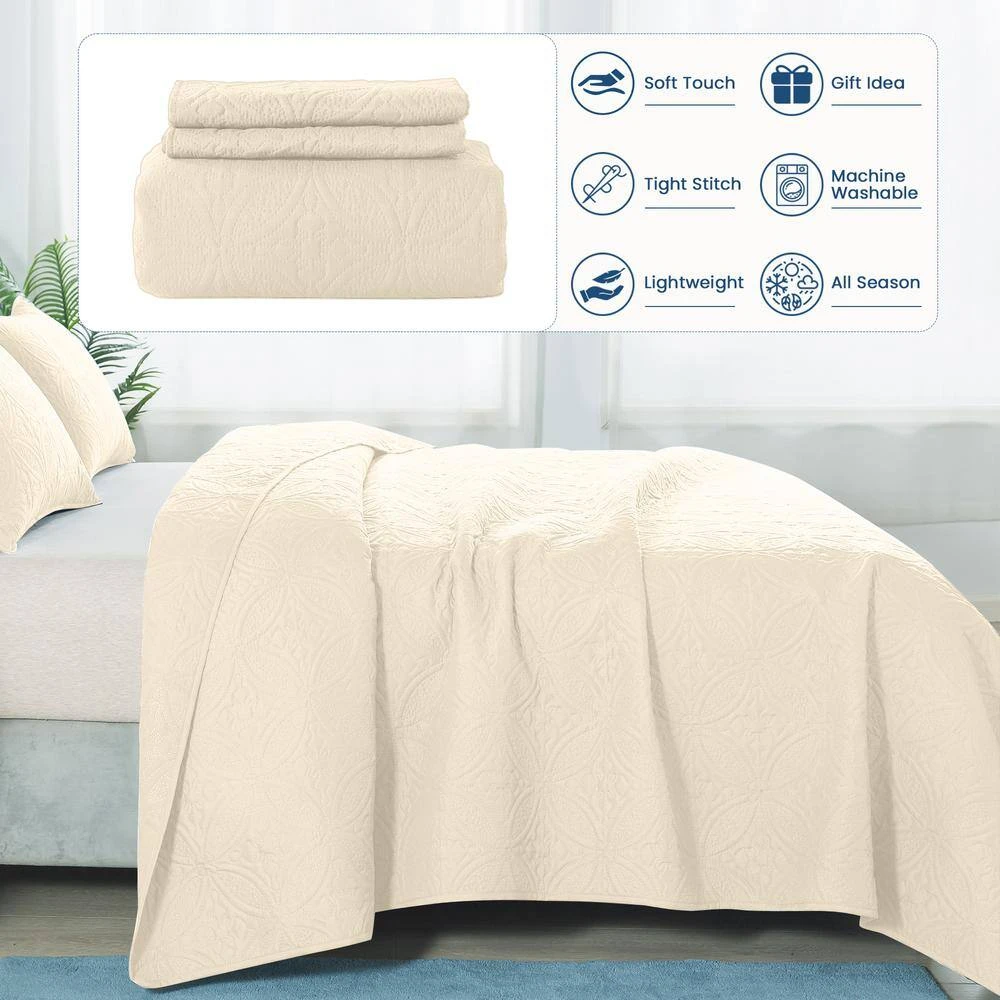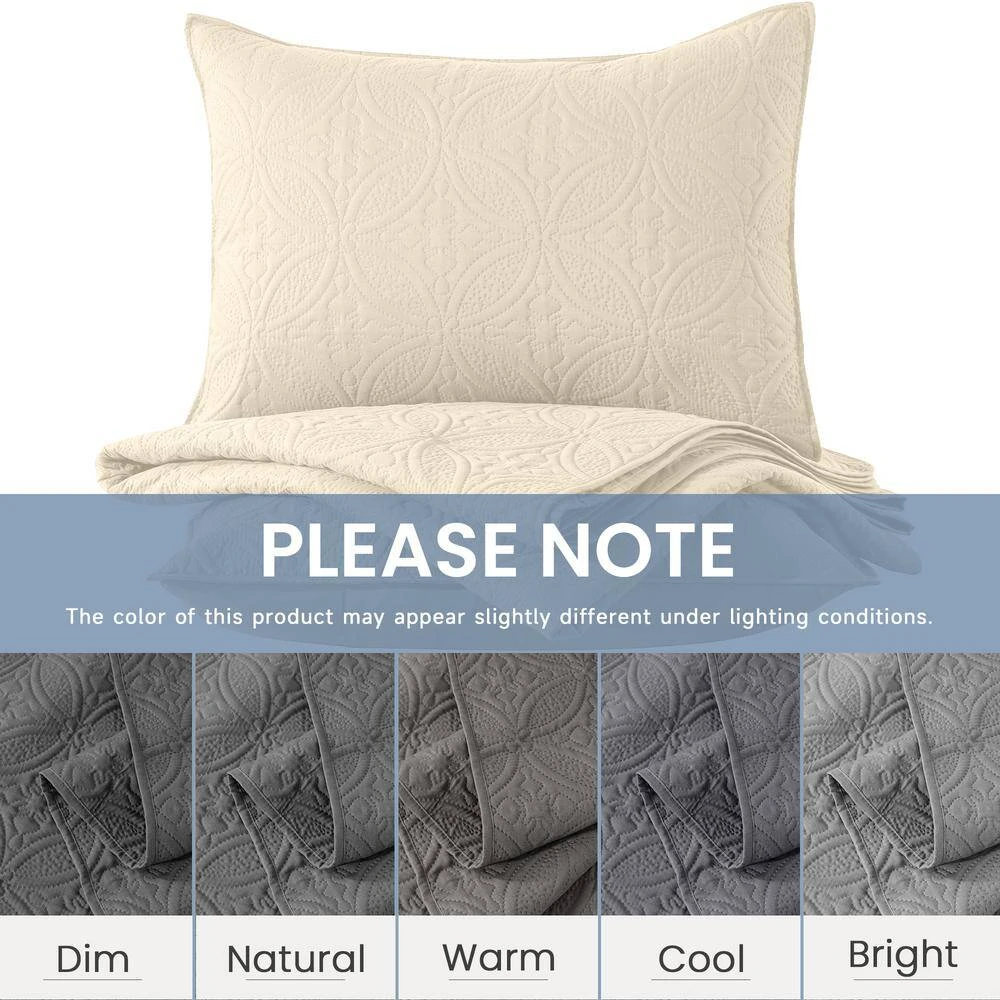 3-Piece Beige Modern Microfiber Full/Queen-Quilt-Set Quilt Set