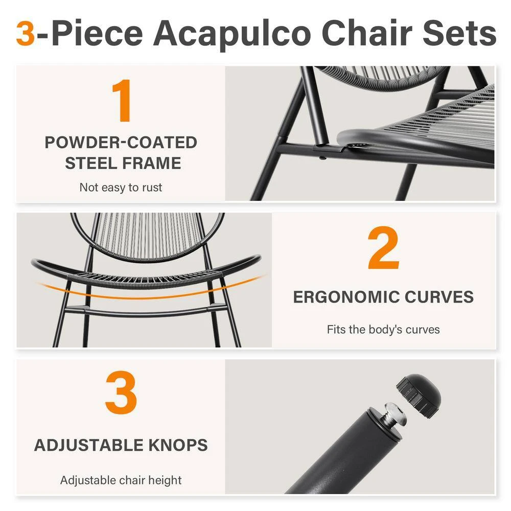 - Sturdy construction: reinforced table legs that add a stereoscopic look to the outdoor ensemble allow the table top easily hold drinks, meals or decorations, the maximum weight capacity of a single chair is up to 300 lbs.