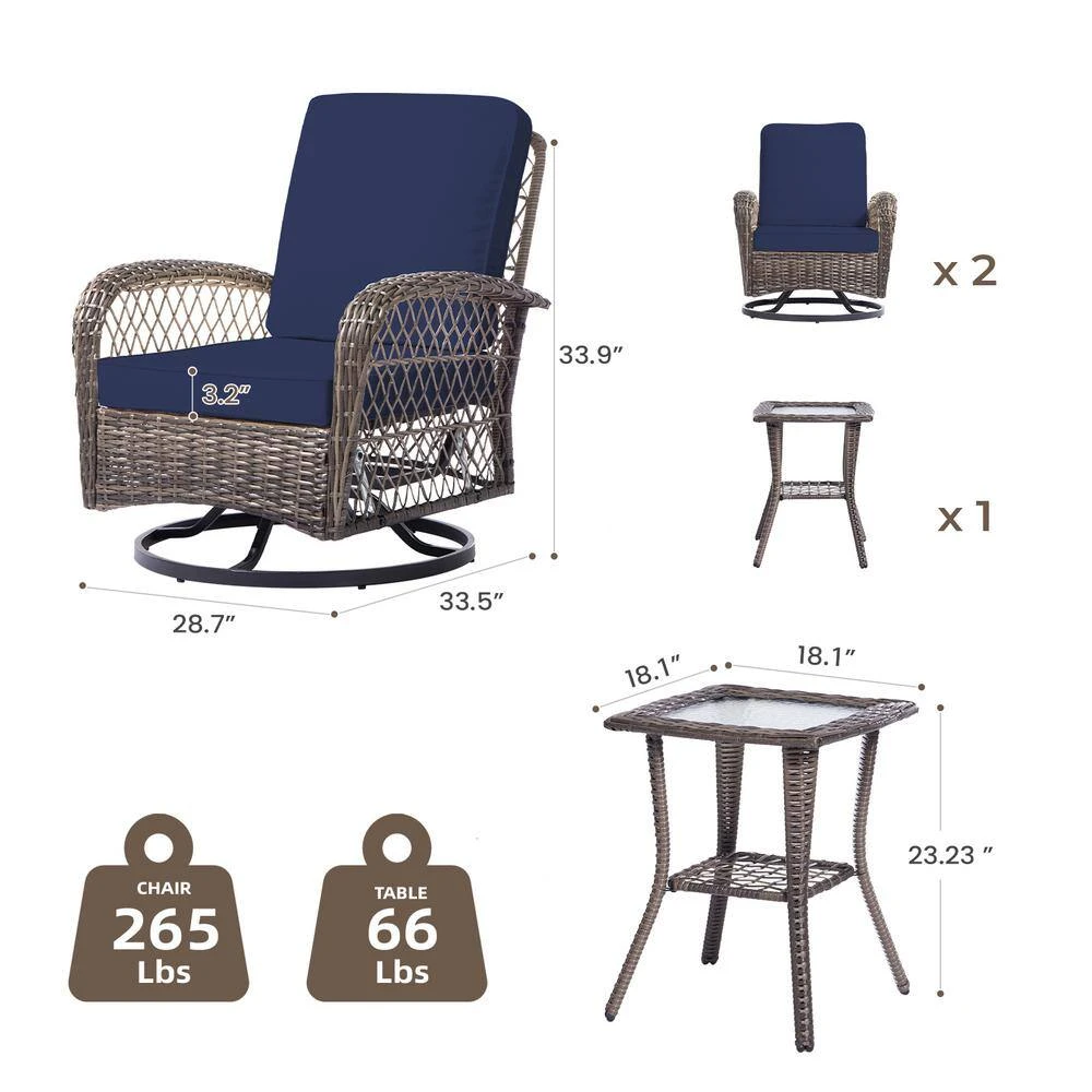 - All the frame surface is covered with rust-resistant powder coating, which can keep the outdoor side table and patio swivel chairs set in the outdoor longer service life
