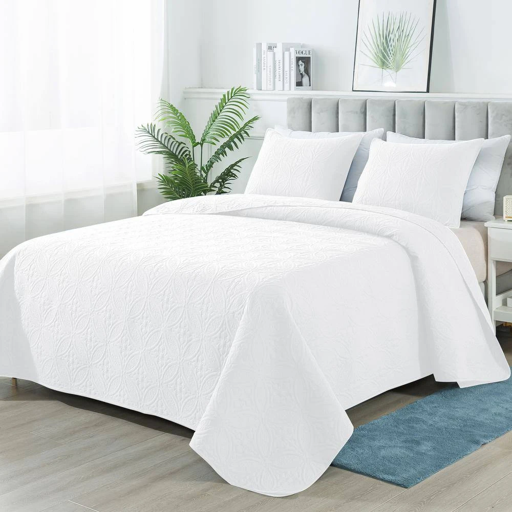 3-Piece White Modern Microfiber Full/Queen-Quilt-Set Quilt Set