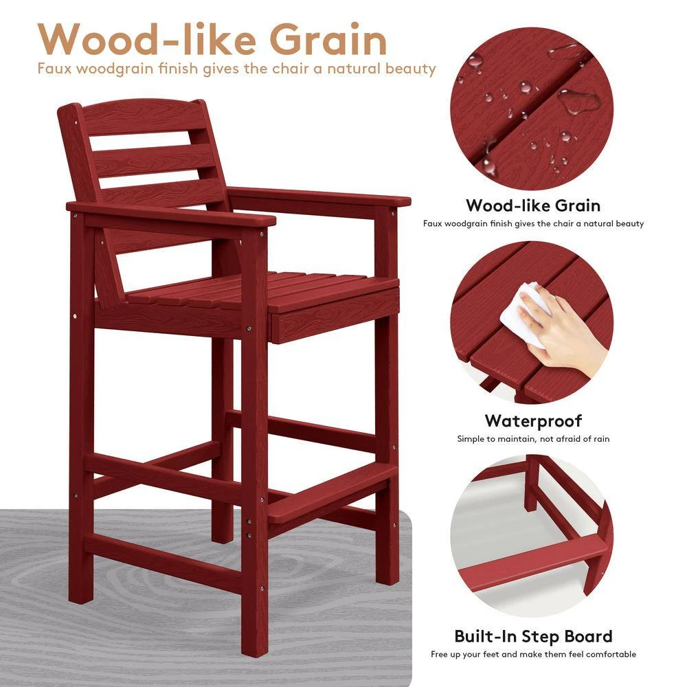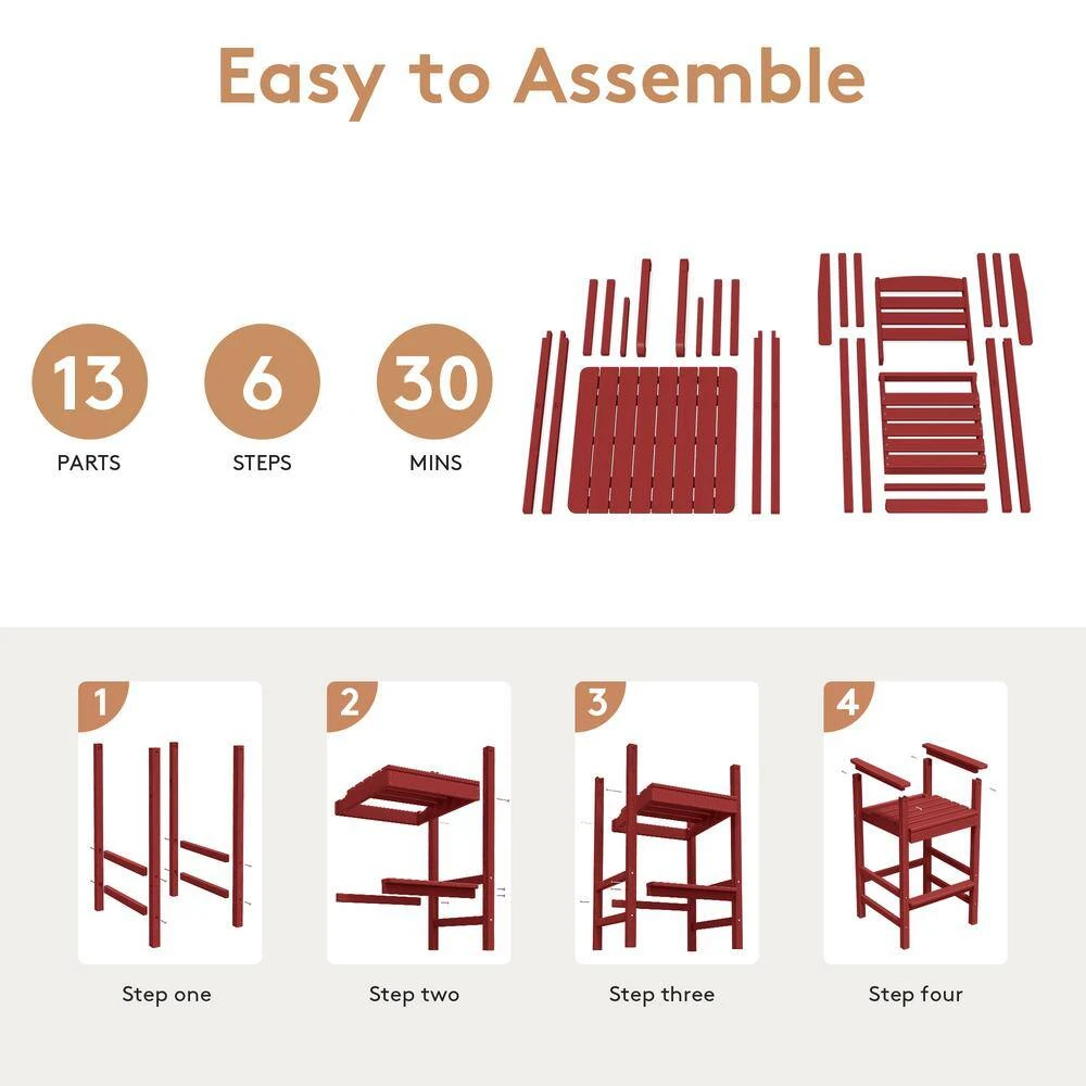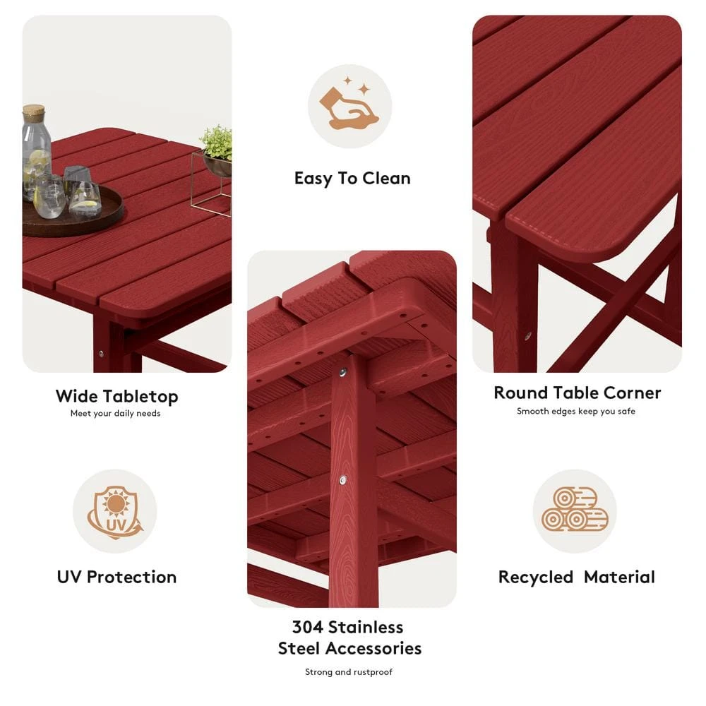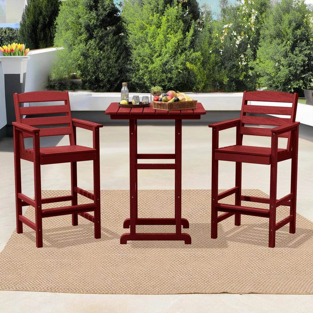 3-Pieces HDPE Plastic Square 46 In. Outdoor Bar Set In Burgandy