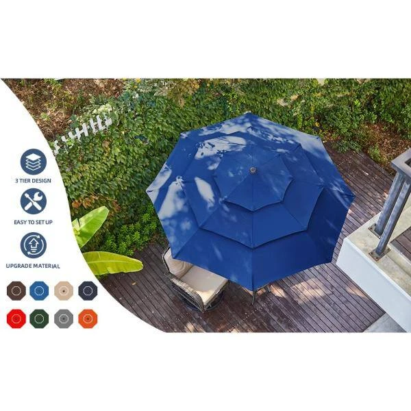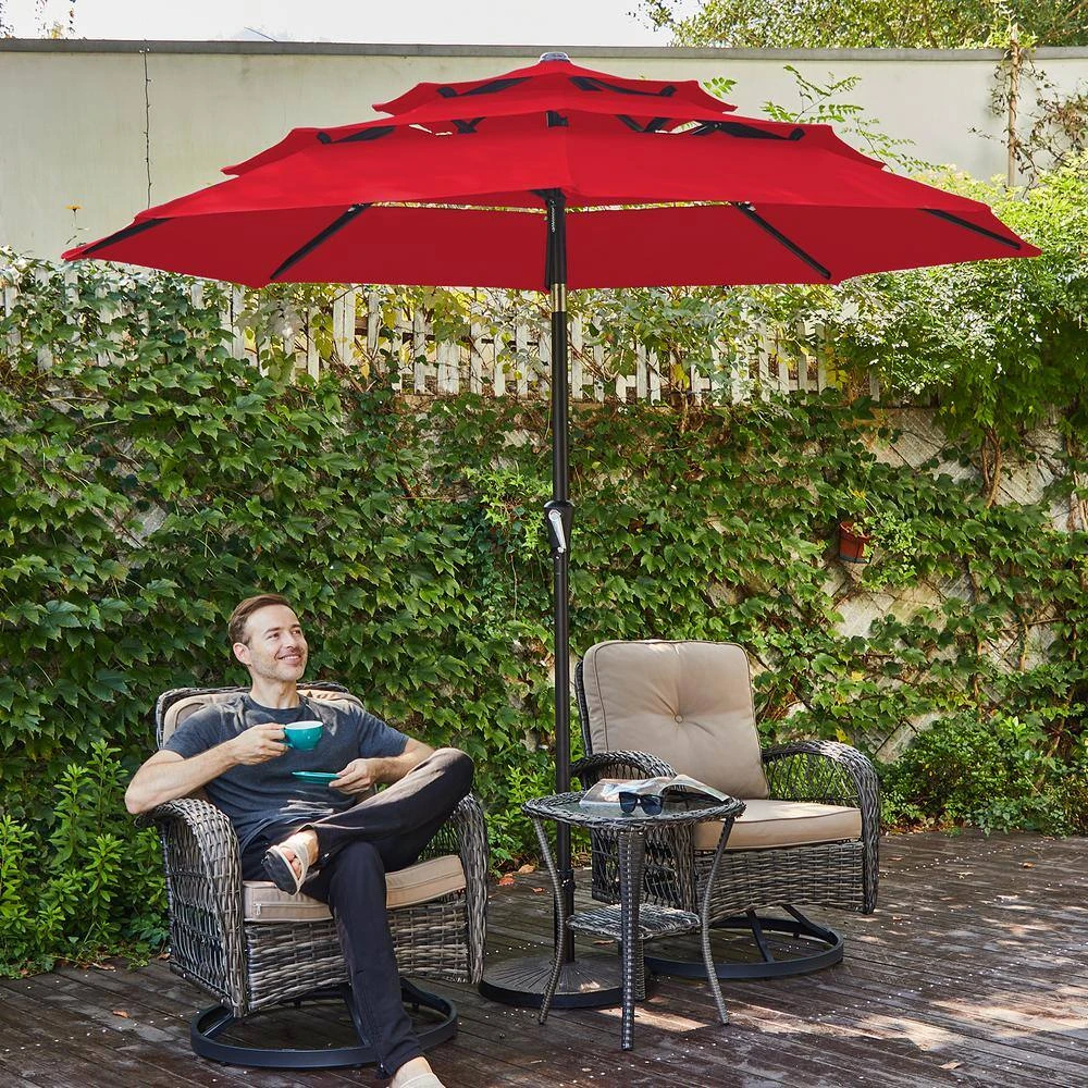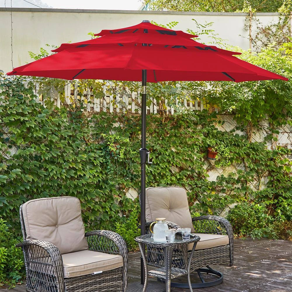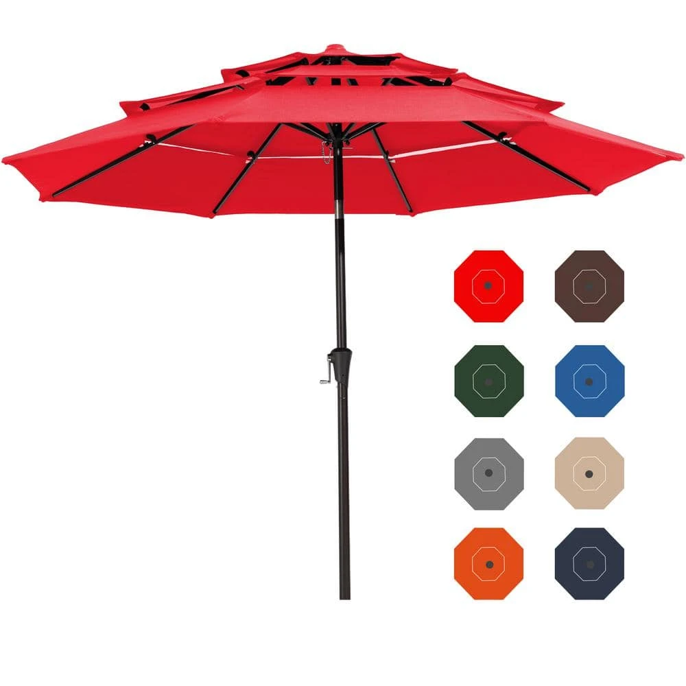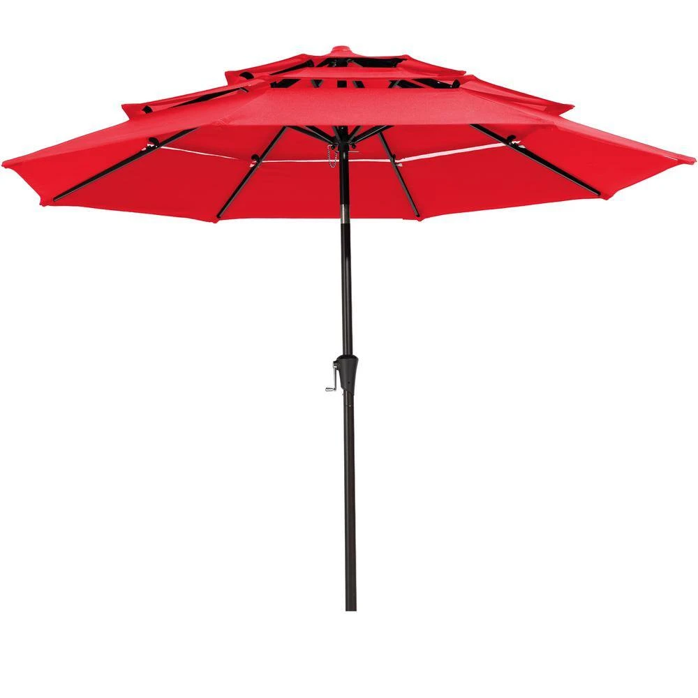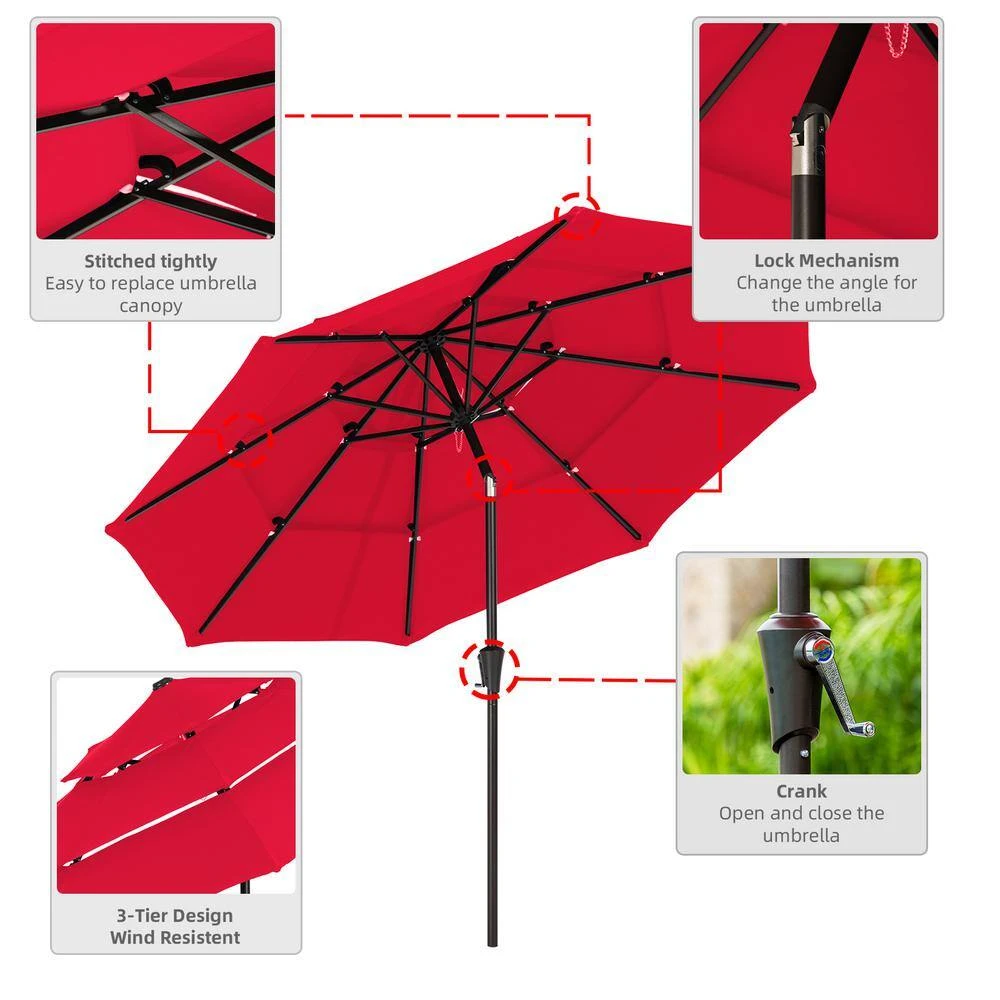 3-Tier 9 Ft. Steel Crank Lift Market Patio Umbrella In Red