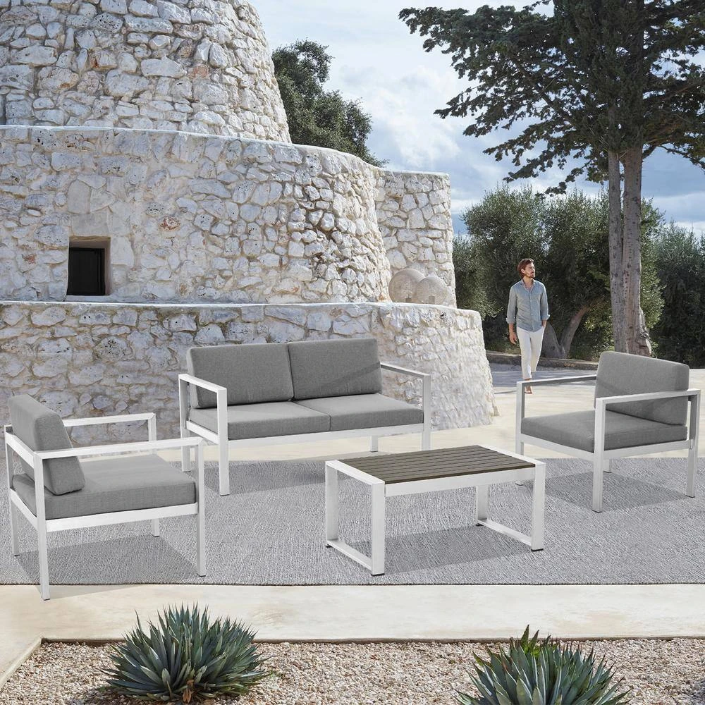 4-Piece Aluminum Patio Conversation Set With Grey Cushions And Coffee Table