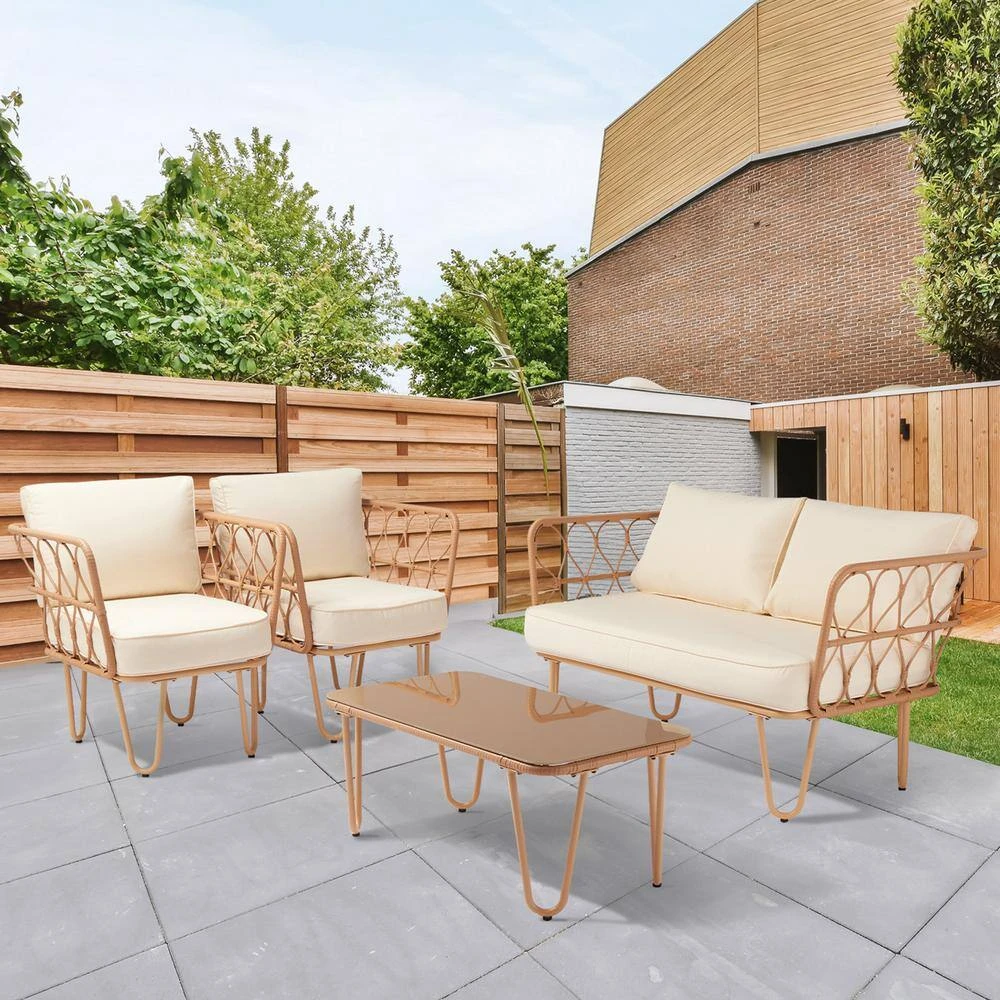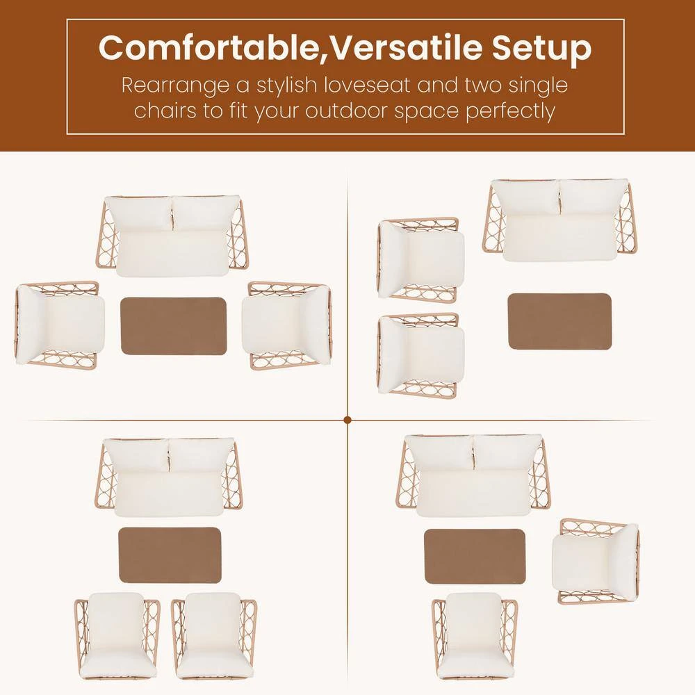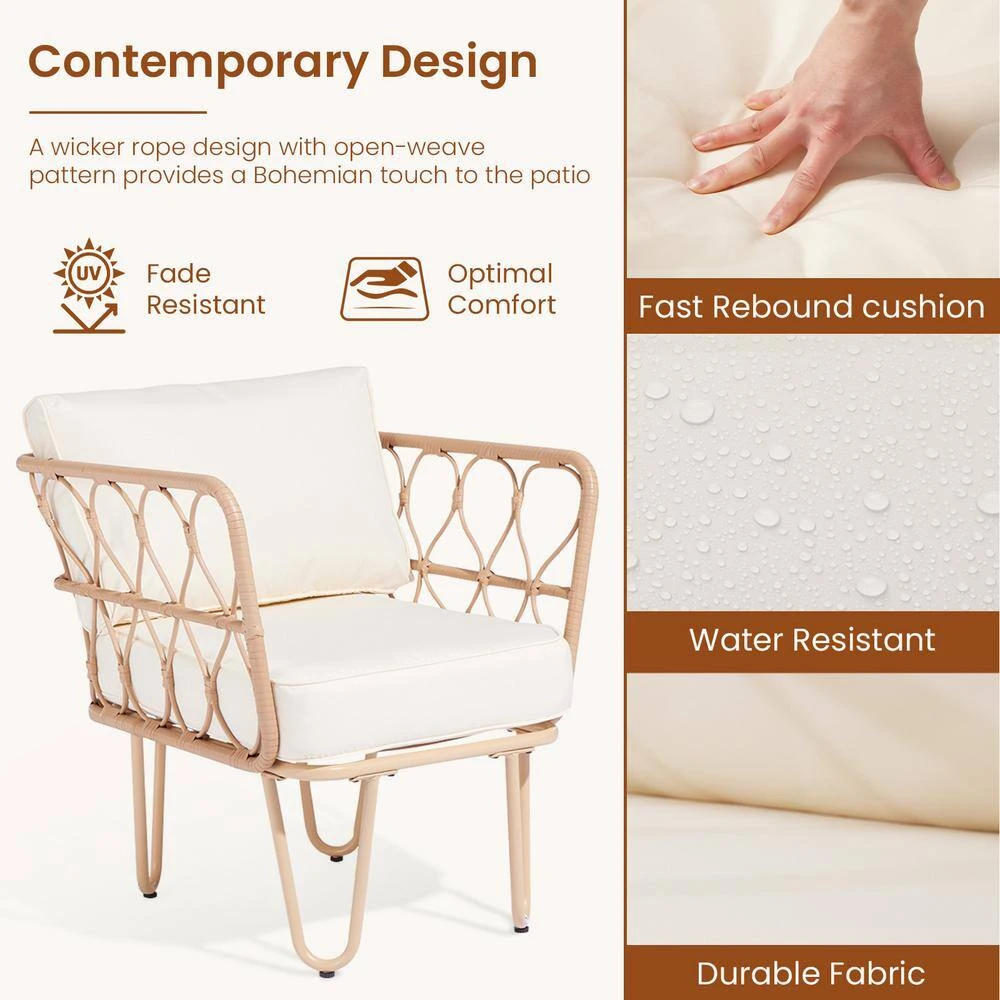 - Strong and sturdy: the wicker of the outdoor furniture set is sturdy but also very light, the seat cushion of this patio conversation set can be removed for easy cleaning