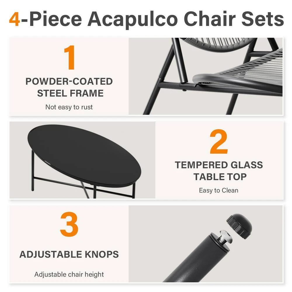 - Sturdy construction: reinforced table legs that add a stereoscopic look to the outdoor ensemble allow the table top easily hold drinks, meals or decorations, the maximum weight capacity of a single chair is up to 300 lbs.