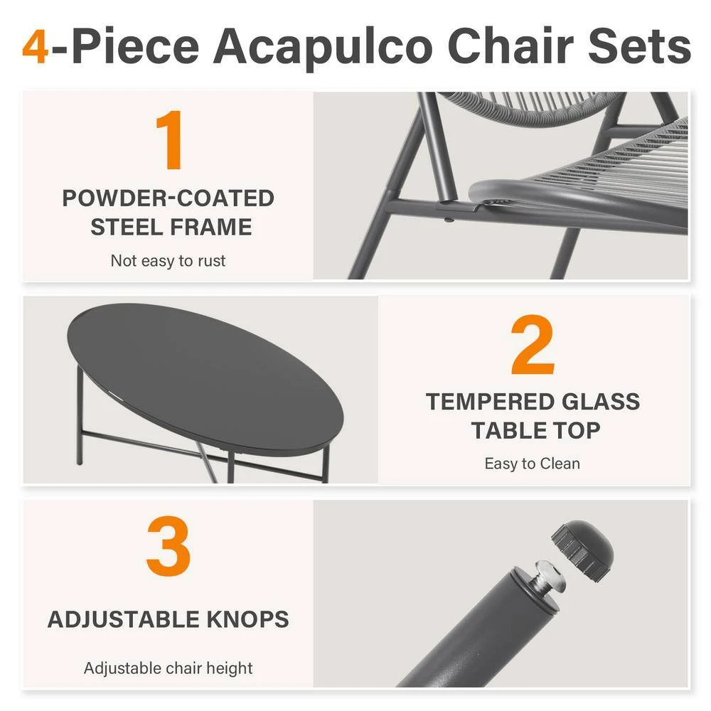 - Sturdy construction: reinforced table legs that add a stereoscopic look to the outdoor ensemble allow the table top easily hold drinks, meals or decorations, the maximum weight capacity of a single chair is up to 300 lbs.