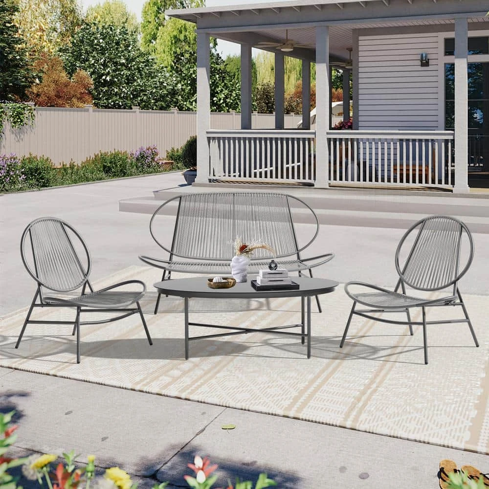 Simple yet elegant design makes this 4-piece bistro set perfect for any outdoor and indoor setting. You can sit on the front porch and enjoy afternoon tea or chat with friends in your own backyard. Made of cast aluminum, it features a unique design and black finish for a vintage look that will suit any home.