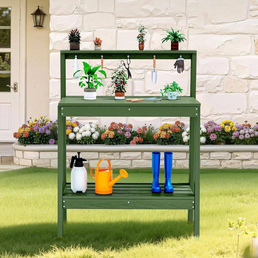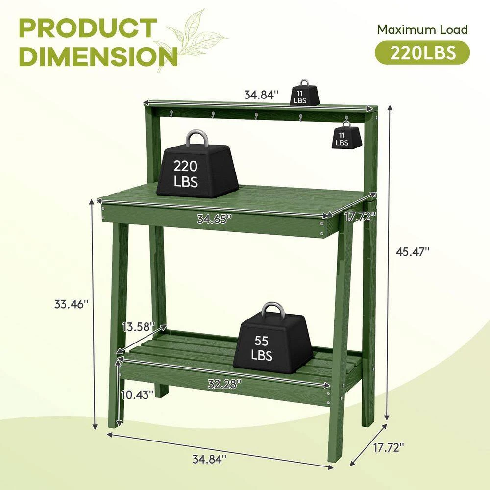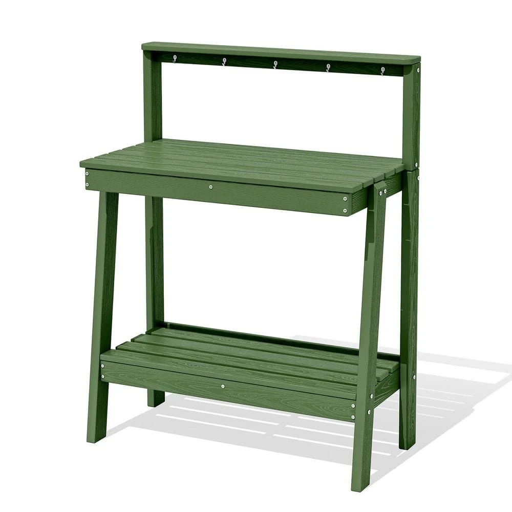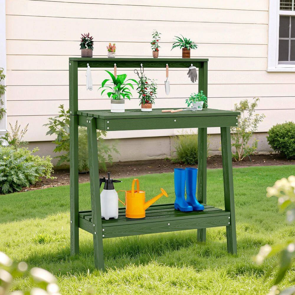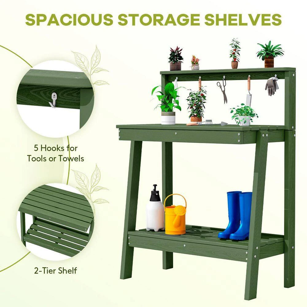 45.5 In. H X 34.8 In. W X 17.7 In. D Avocado Green HDPE Potting Bench Table, Multi-Purpose Plant And Storage Shelf