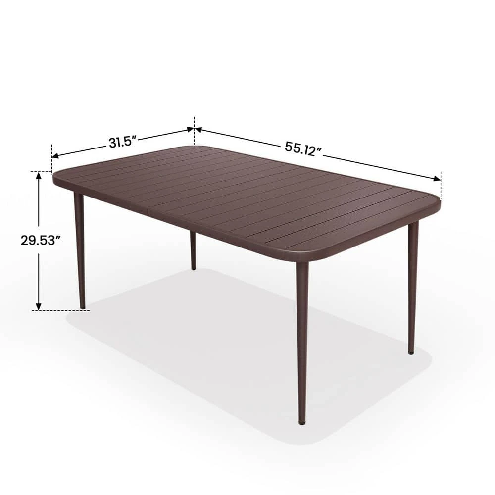 55.1 In. Brown Rectangular Outdoor Patio Dining Table With Wood-Like Tabletop