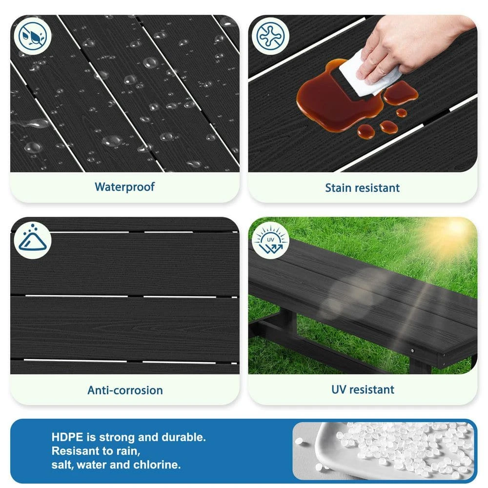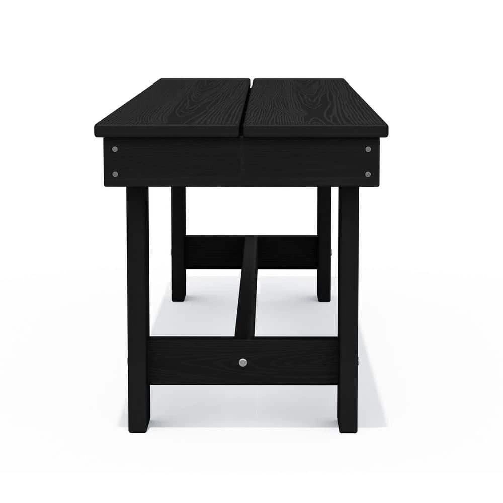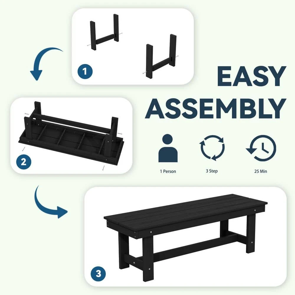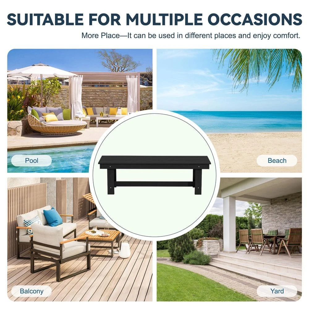 56.3 In. W Outdoor Patio HDPE Plastic All-Weather Resistant Ottoman Backless Dining Bench In Black