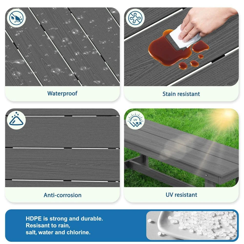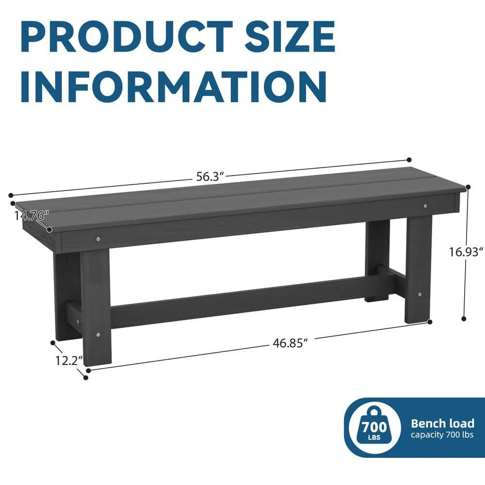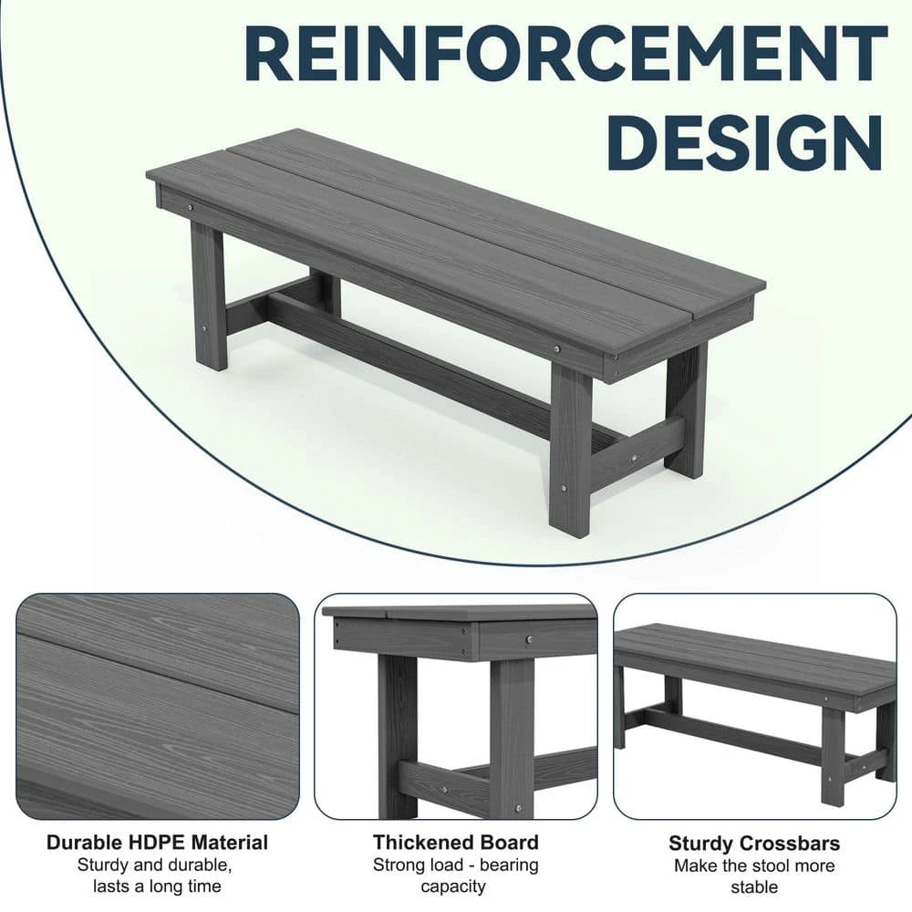 56.3 In. W Outdoor Patio HDPE Plastic All-Weather Resistant Ottoman Backless Dining Bench In Gray