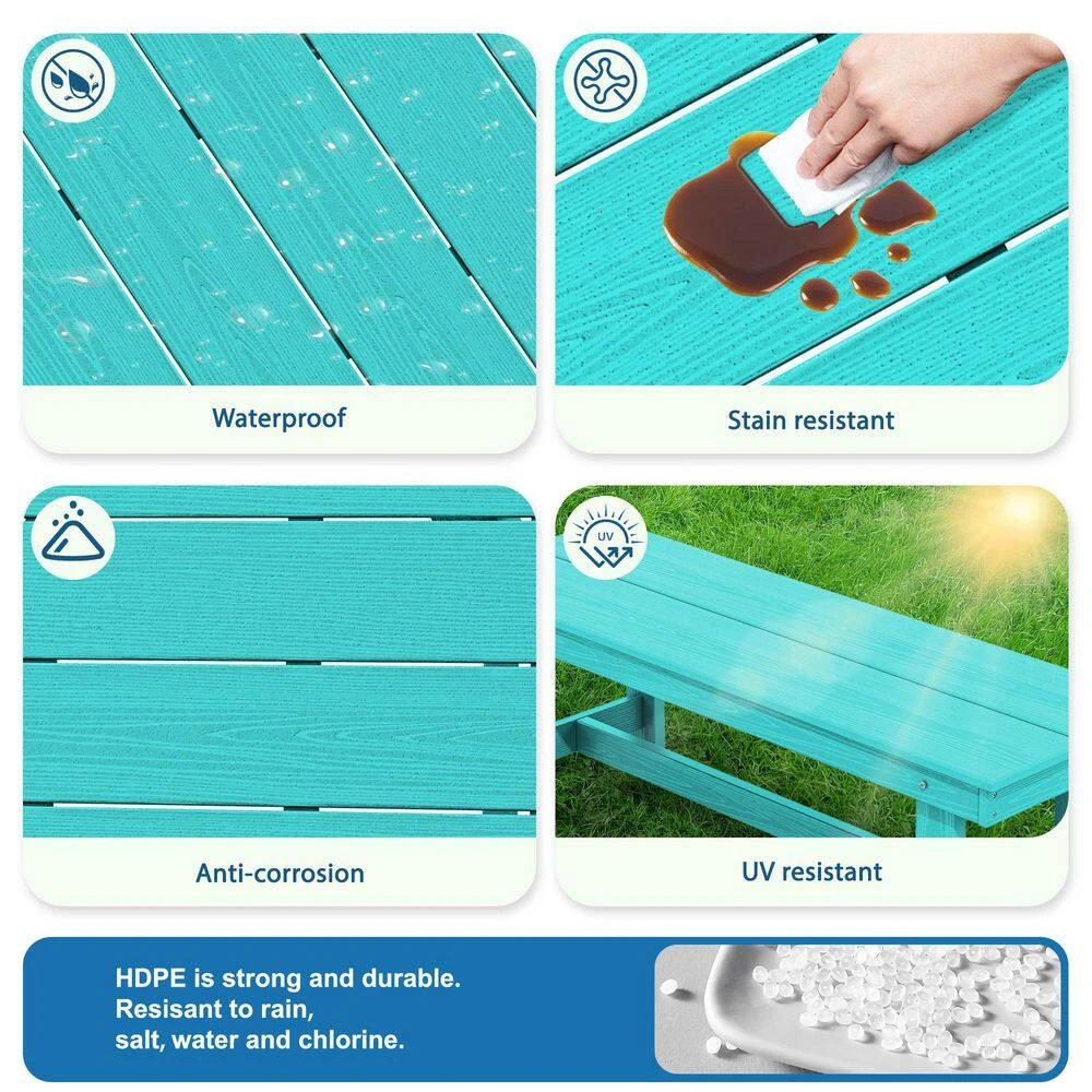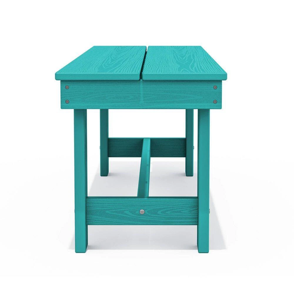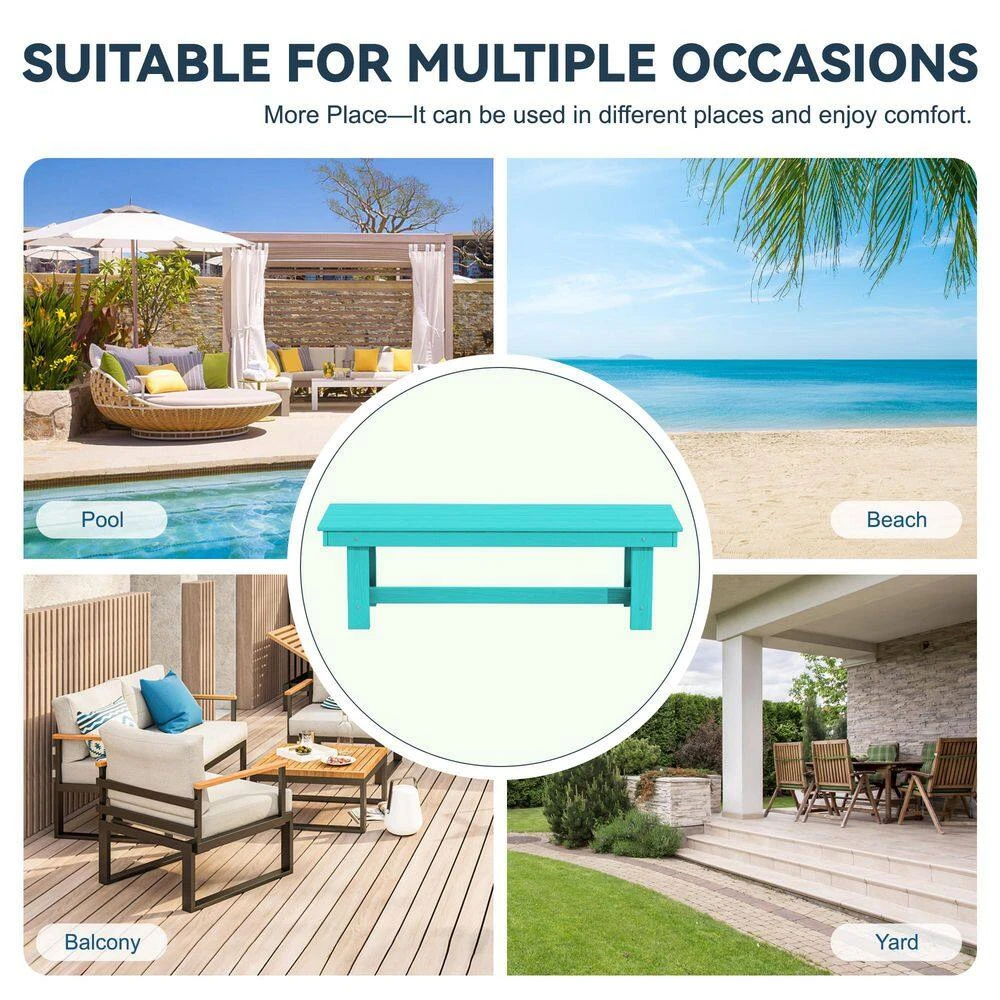 56.3 In. W Outdoor Patio HDPE Plastic All-Weather Resistant Ottoman Backless Dining Bench In Peacock Blue