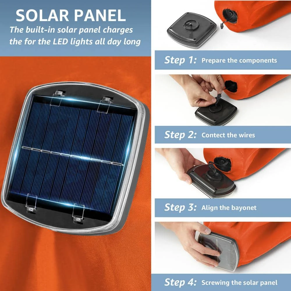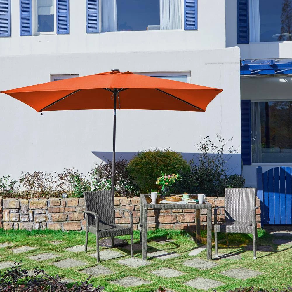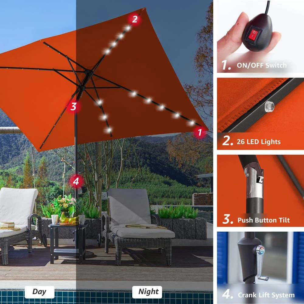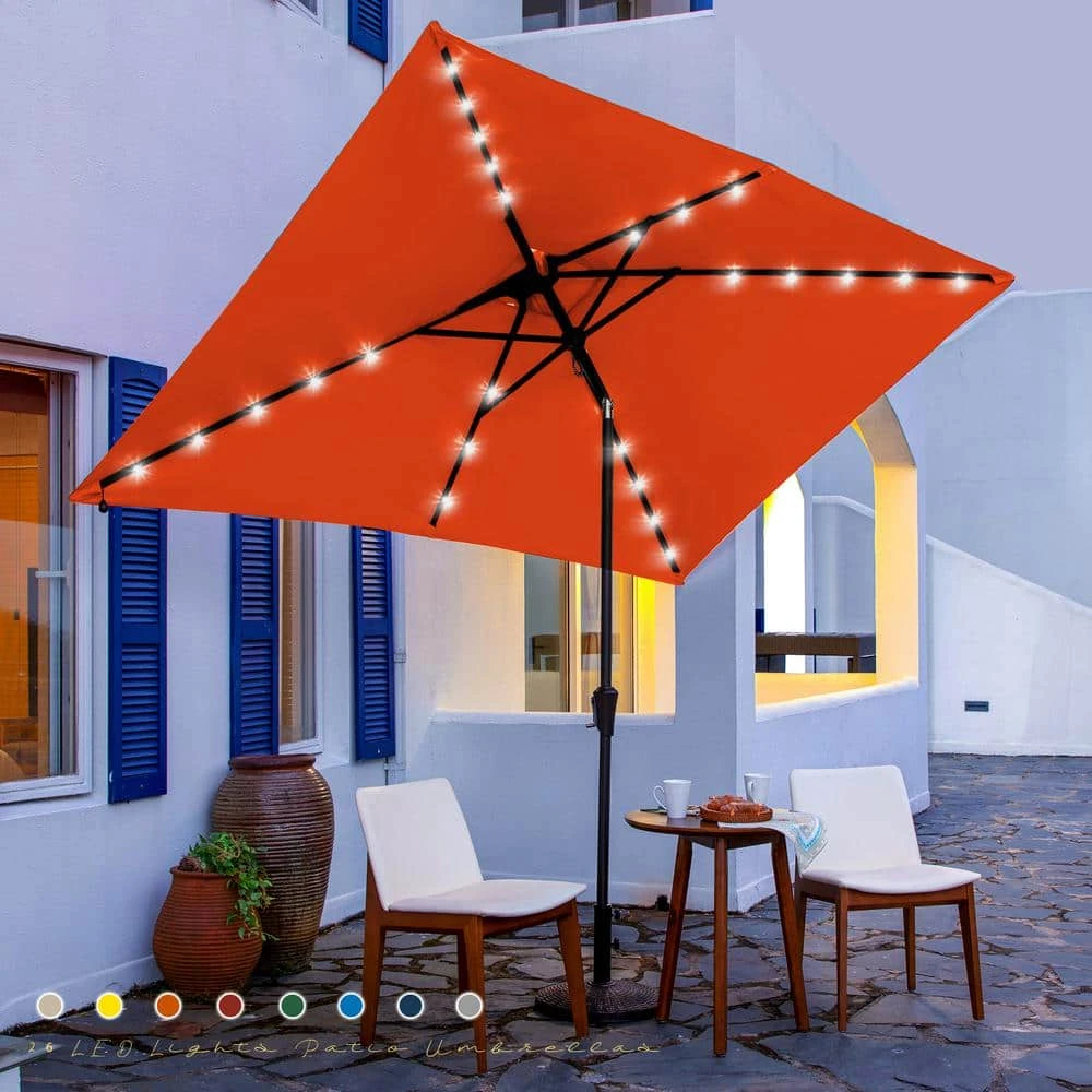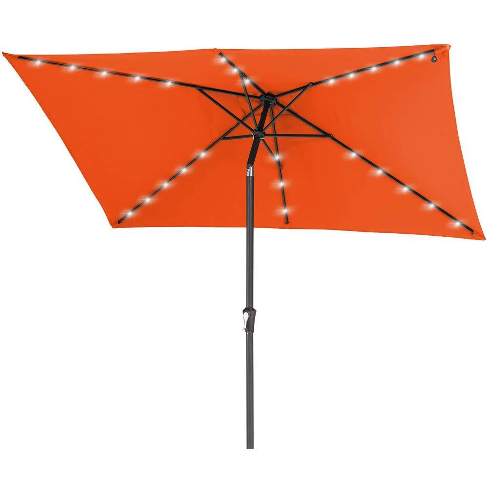 6.5 Ft. X 10 Ft. Steel Lighted Market Tilt Solar Umbrella With Crank In Orange