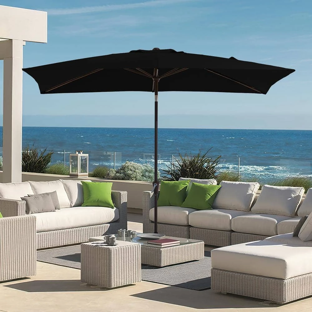 6.5 Ft. X 10 Ft. Steel Market Tilt Patio Umbrella In Blue And White