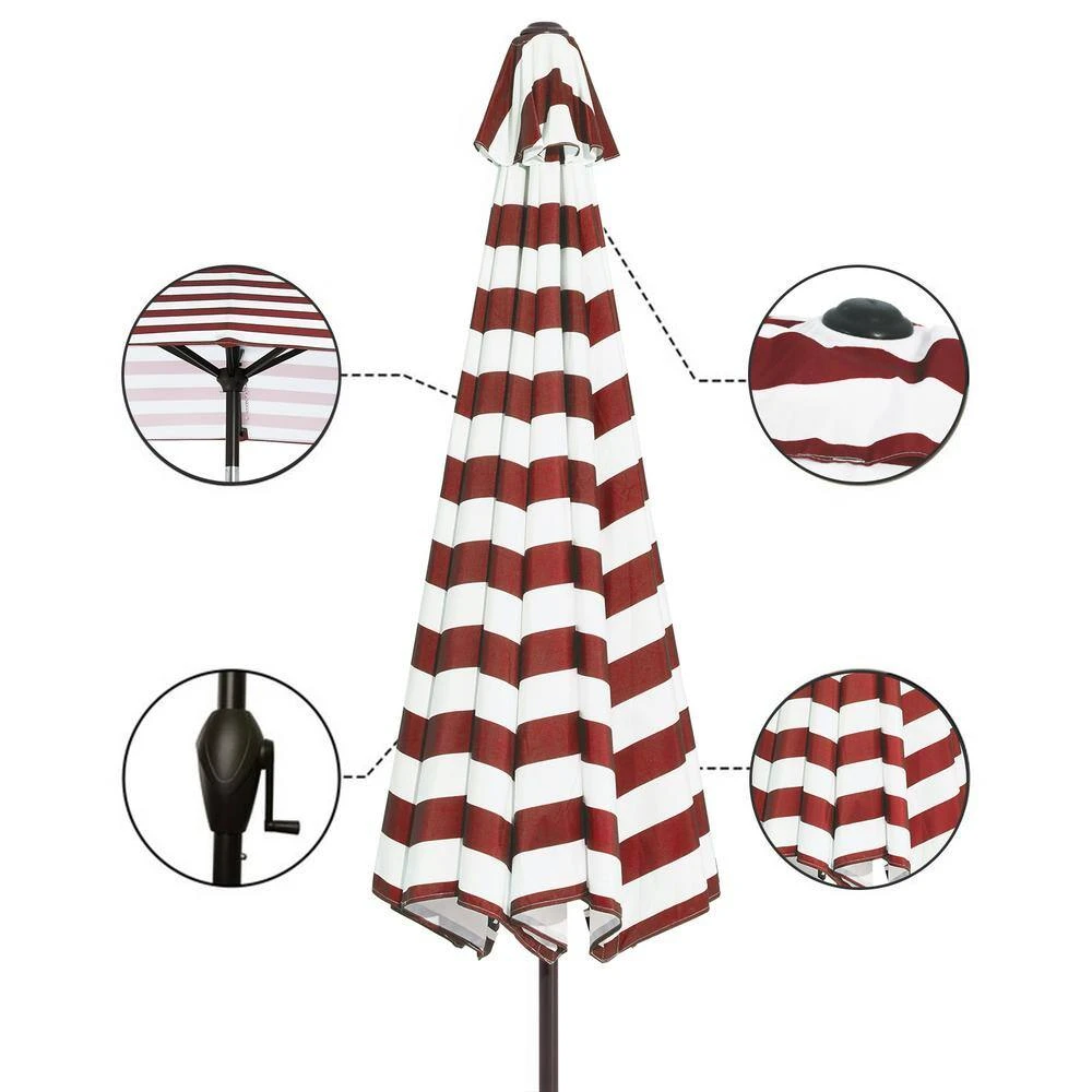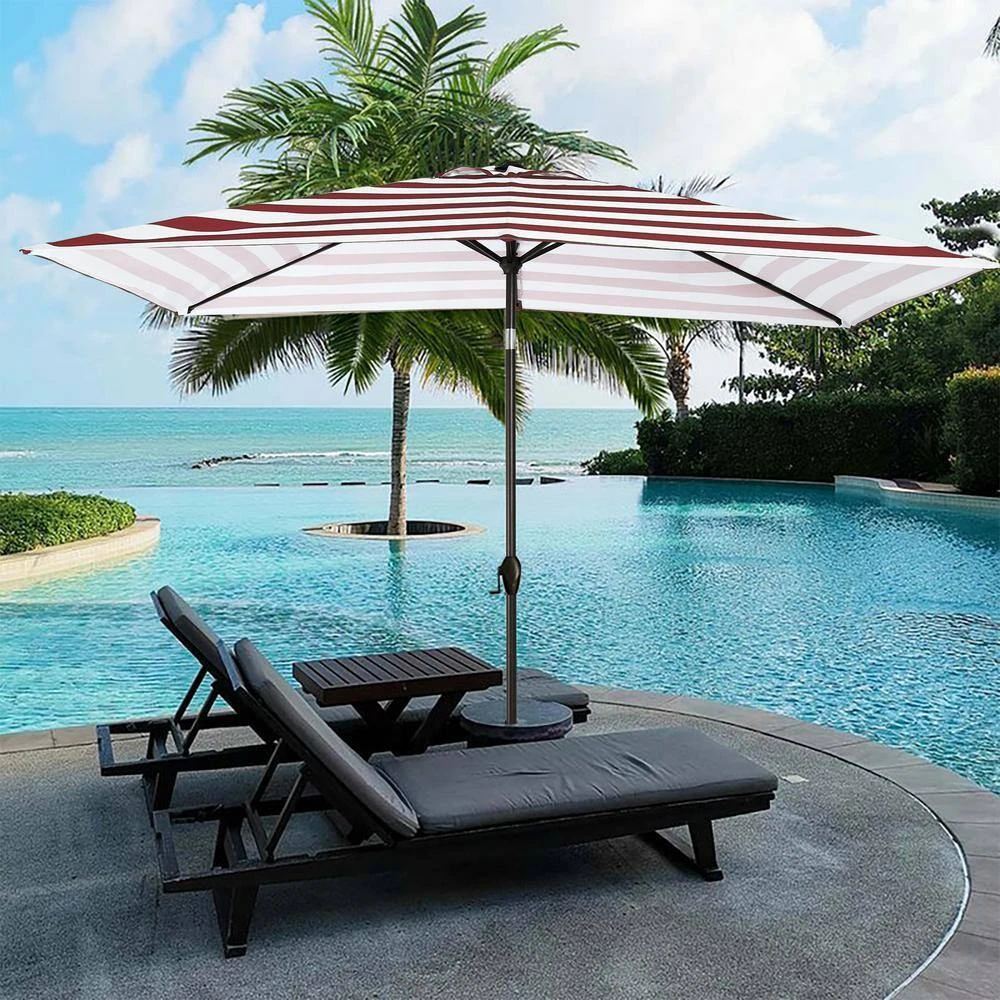 6.5 Ft. X 10 Ft. Steel Market Tilt Patio Umbrella In Red And White