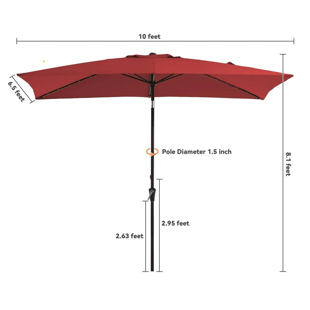 6.5 X 10 Ft. Market Solar LED Lighted Tilt Patio Umbrella Rectangular Outdoor Umbrella In Red