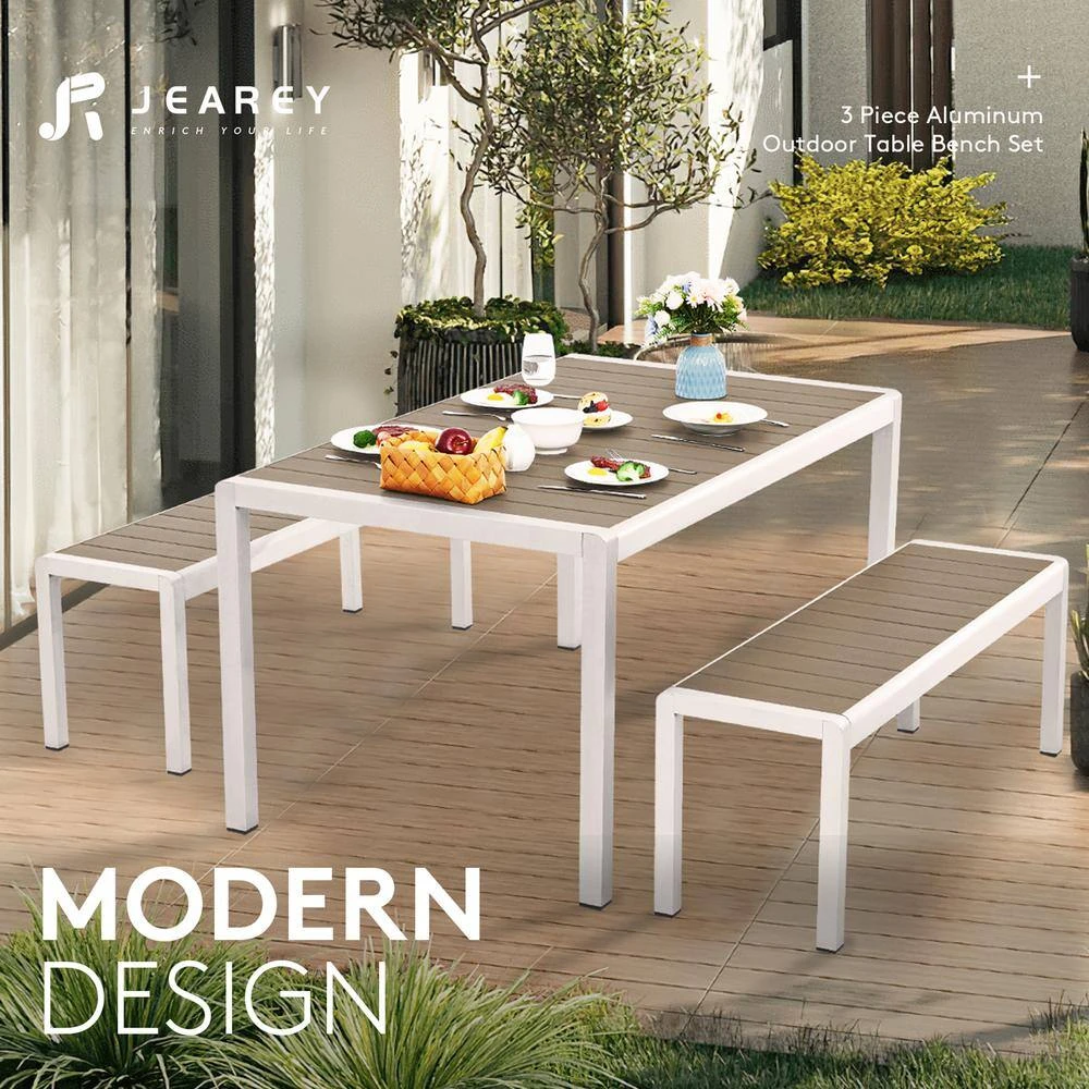 6 – Person Rectangular Teak Metal Outdoor Dining Set