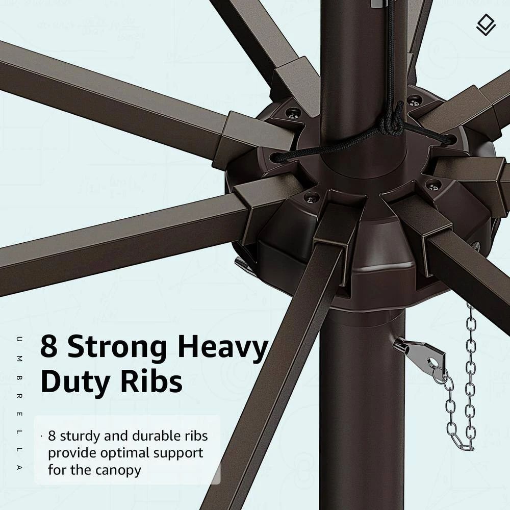 - Sturdy steel pole attaches to the 8 ribs that provide stronger support in the wind