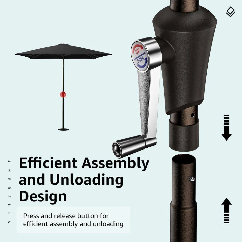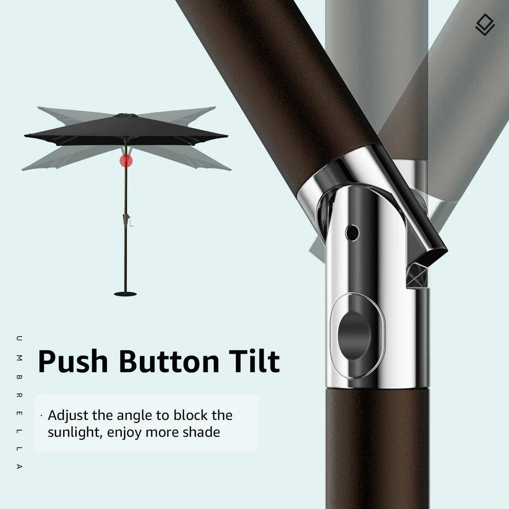 The 7.5 ft., square patio umbrella is made of high durability UV-resistant polyester fabric, which is waterproof, fade-resistant and rust-proof. And the crank system makes it easy to collapse. The function of tilt can satisfy your demand. Provide a perfect shade for your patio, garden, deck, backyard, pool and any other outdoor area.
