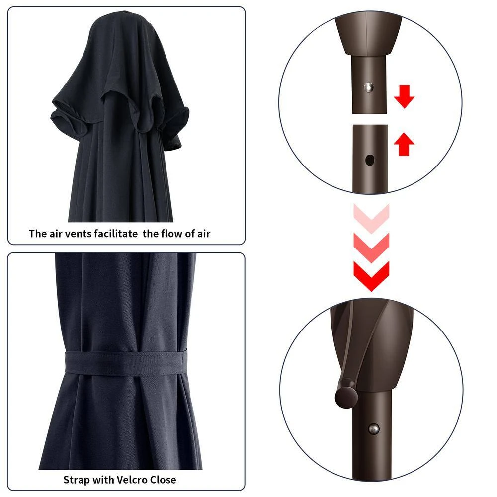 - Sturdy steel pole attaches to the 8 ribs that provide stronger support in the wind