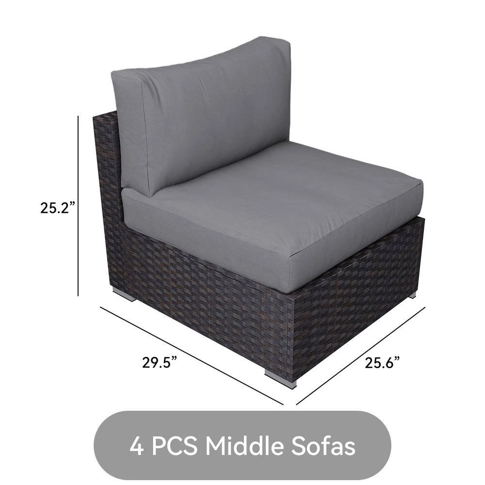 - Specially for you: Except 4 single sofa, 2 corner sofa, 1 coffee table and cushions contained originally, we prepare extra 2 pillows (16.5”x16.5”) and 1 rain-resistant sofa cover for you.