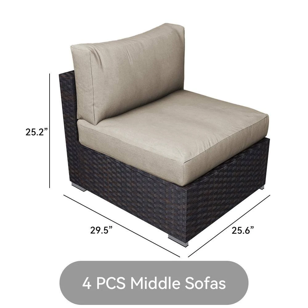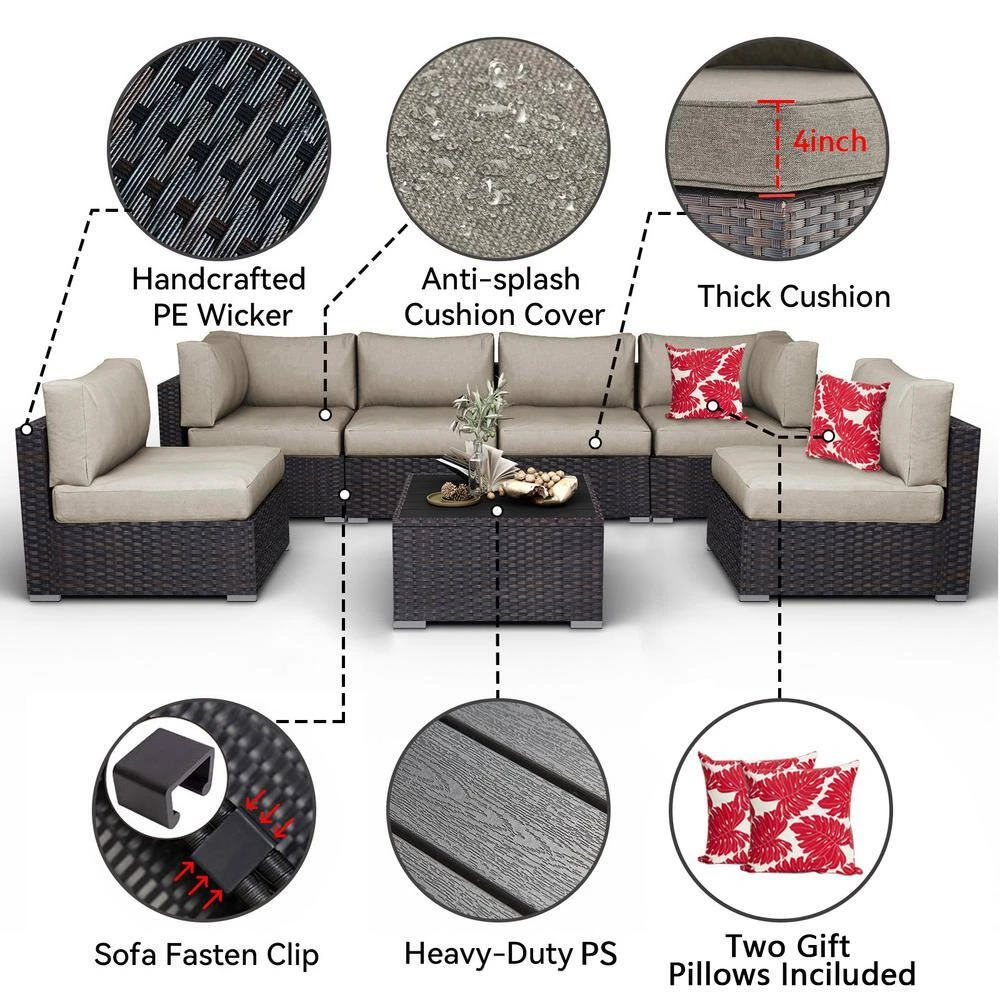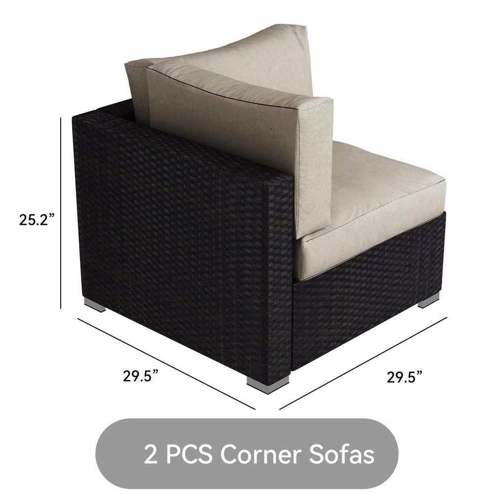 - Specially for you: Except 4 single sofa, 2 corner sofa, 1 coffee table and cushions contained originally, we prepare extra 2 pillows (16.5”x16.5”) and 1 rain-resistant sofa cover for you.
