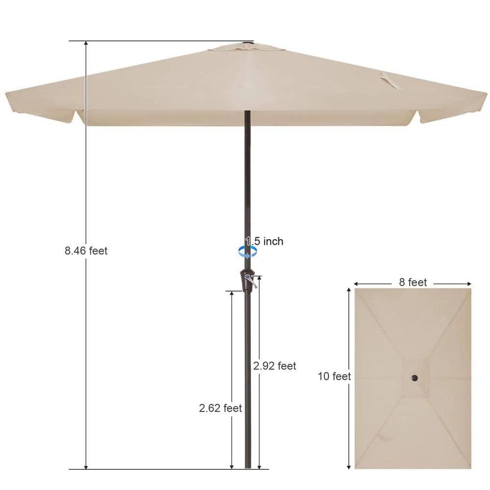 8 Ft X 10 Ft. Rectangular Steel Market Crank And Tilt Outdoor Patio Umbrella In Tan