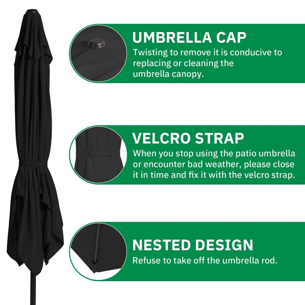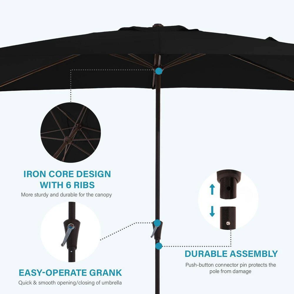 8 Ft. X 10 Ft. Steel Rectangular Market Umbrella In Black