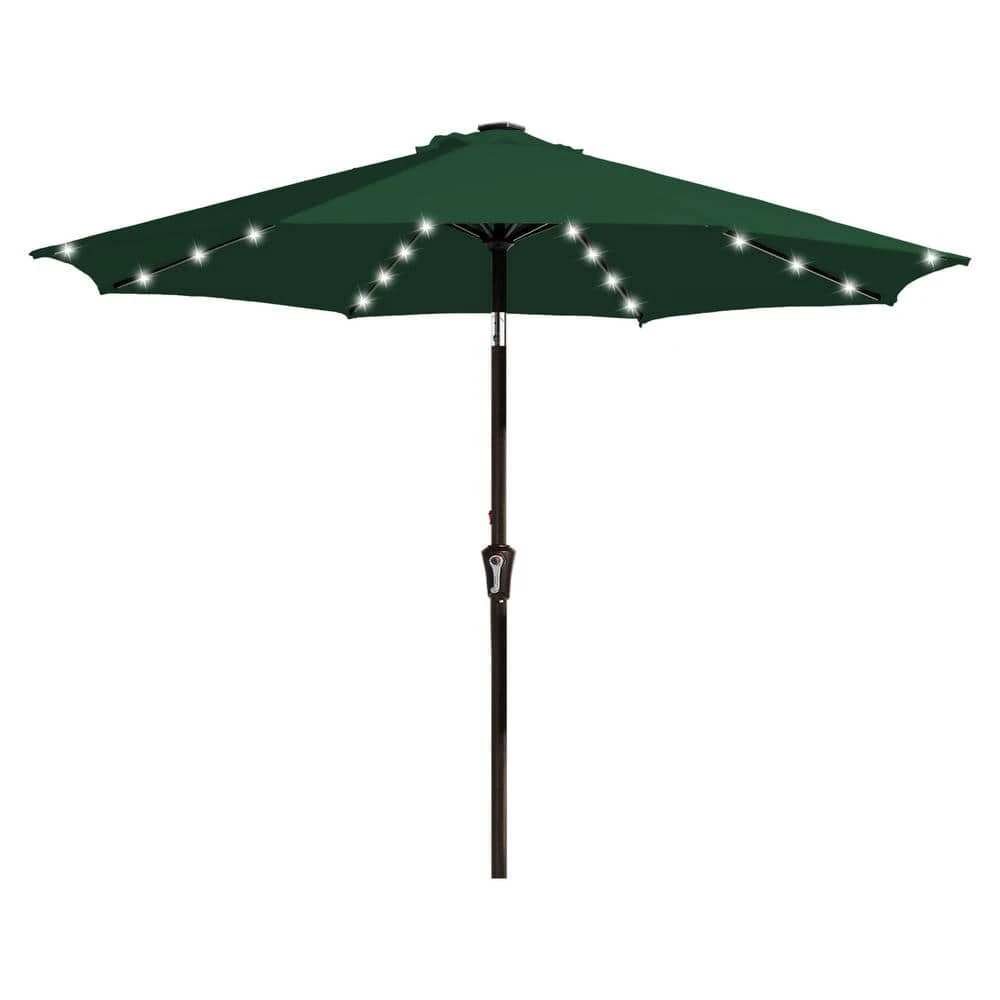 Enhance your outdoor living experience with the versatile and stylish Market Tilt Patio Umbrella. The umbrella features energy-efficient LED lights built into the ribs of the canopy, powered by a solar panel on top. The solar panel charges during the day to provide ambient lighting in the evening, allowing you to enjoy your outdoor space longer. This umbrella is designed to provide ample shade and comfort, making it a perfect addition to any patio, garden, deck, or poolside area.
