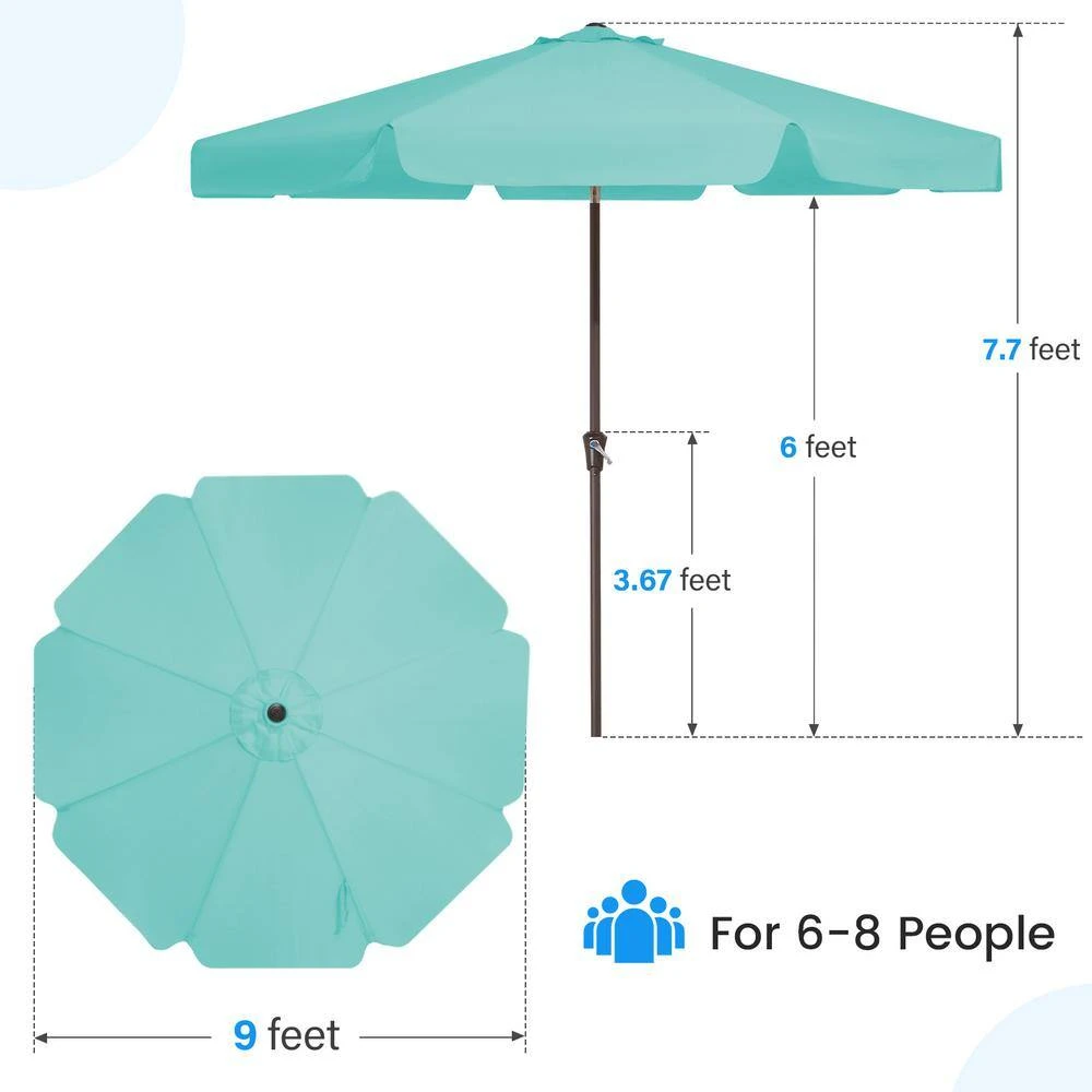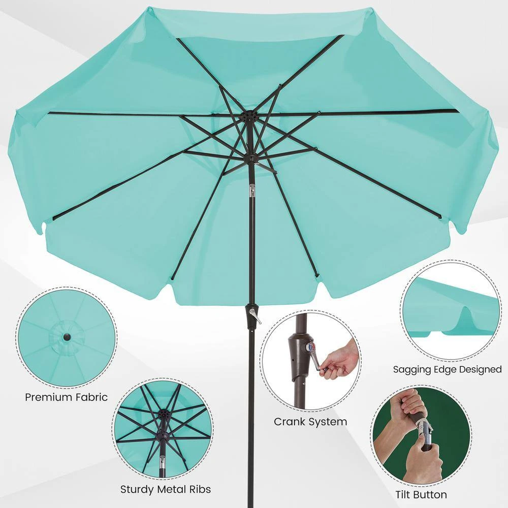 9 Ft. Steel Market Crank And Tilt Outdoor Patio Umbrella In Peacock Blue