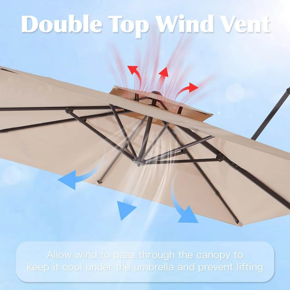 9 Ft. X 9 Ft. Aluminum Square Cantilever Patio Umbrella With Weighted Base In Beige