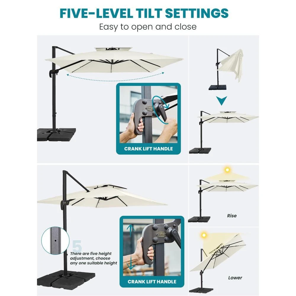 - Durable fabric cover for the cantilever patio umbrella comes with the package; it is an excellent addition to protecting it