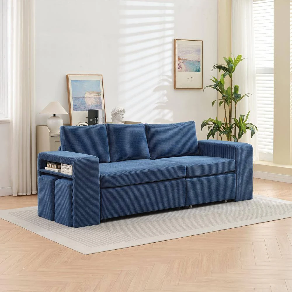 Choose an appropriate sofa providing enough seating space for your friends and family. This sofa set is upholstered with high-quality fabric corduroy embody the luxury and chic style of contemporary living room interior, the thicker cushioned seat and padded armrest provides you with much support and ultimate coziness, allowing you to sit for a long time but not tired, works great in the office, bedroom, guest room, or living room