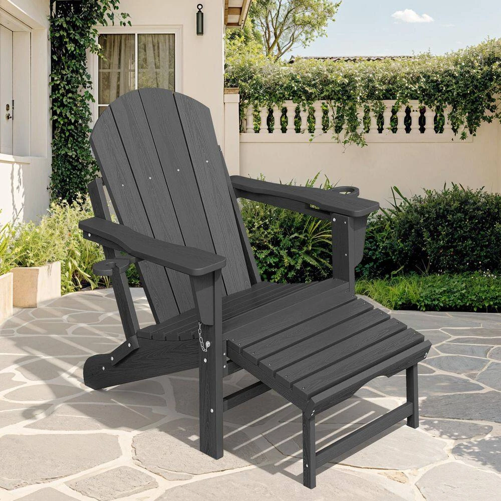 - With retractable ottoman: our adirondack chair has a built-in 22 in. retractable footrest that provides excellent support for your feet. when you don’t need it, you can simply retract the footrest and hide it under the seat. overall dimensions are 51 in. L x 30 in. W x 36 in. H, and its oversized design perfectly fits most body shape