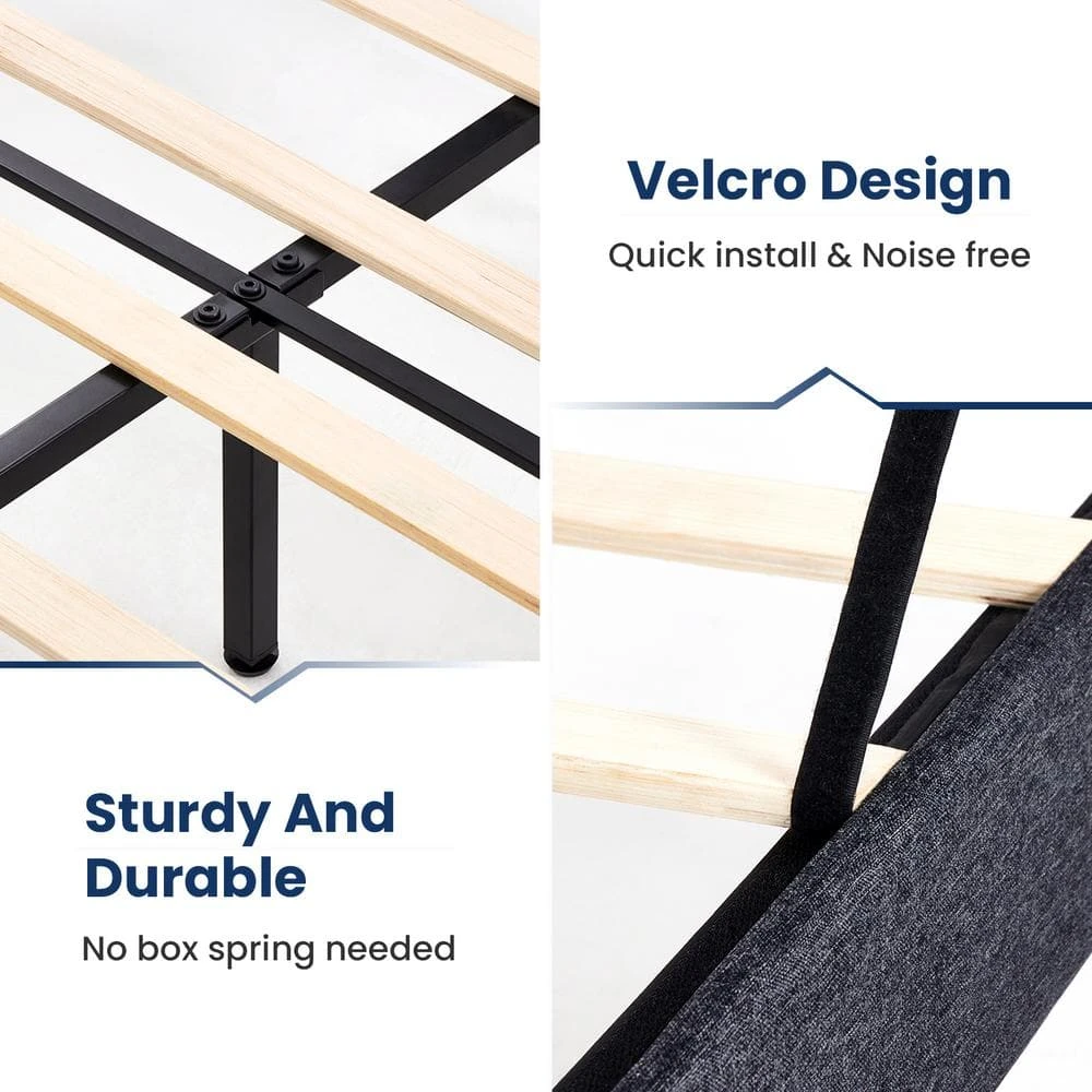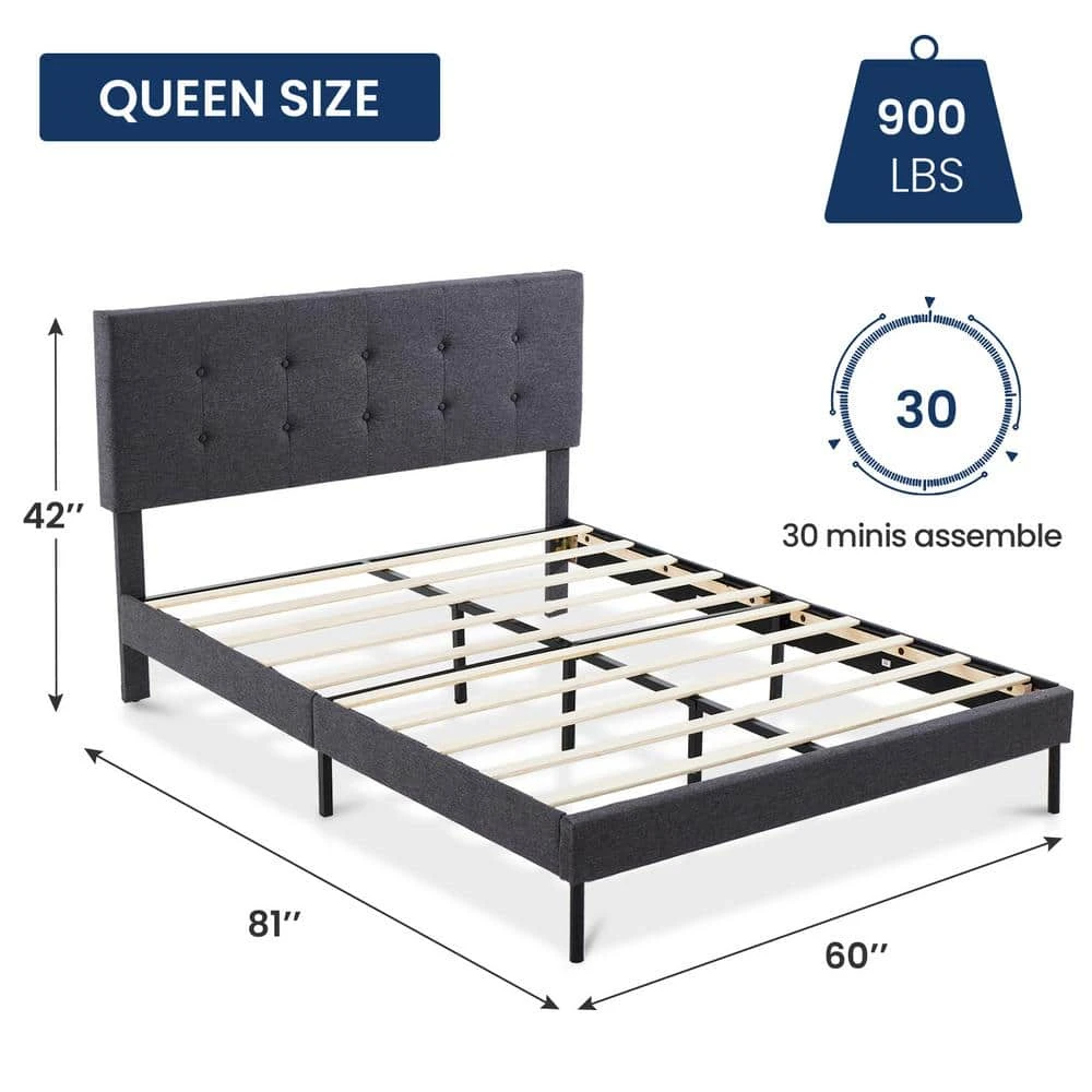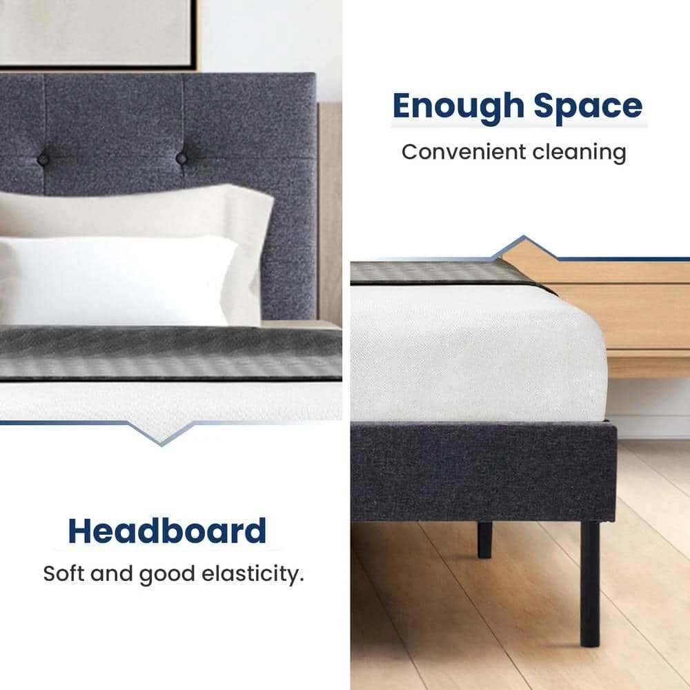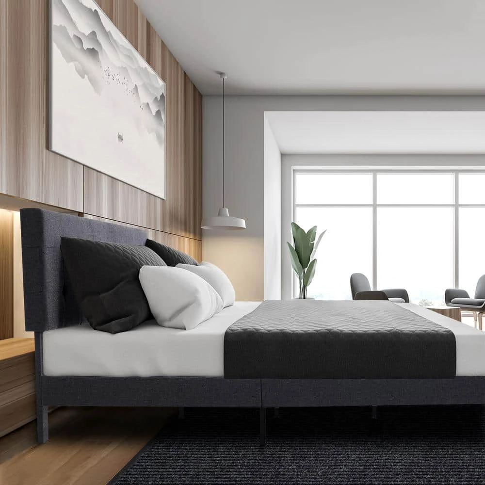 Alex Black And Grey Queen Upholstered Platform Bed Frame With Headboard