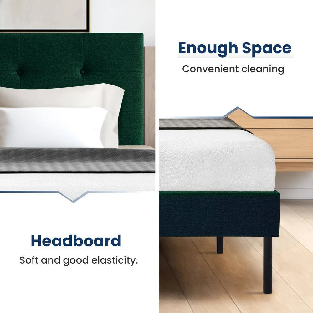 Alex Green Twin Upholstered Platform Bed Frame With Headboard