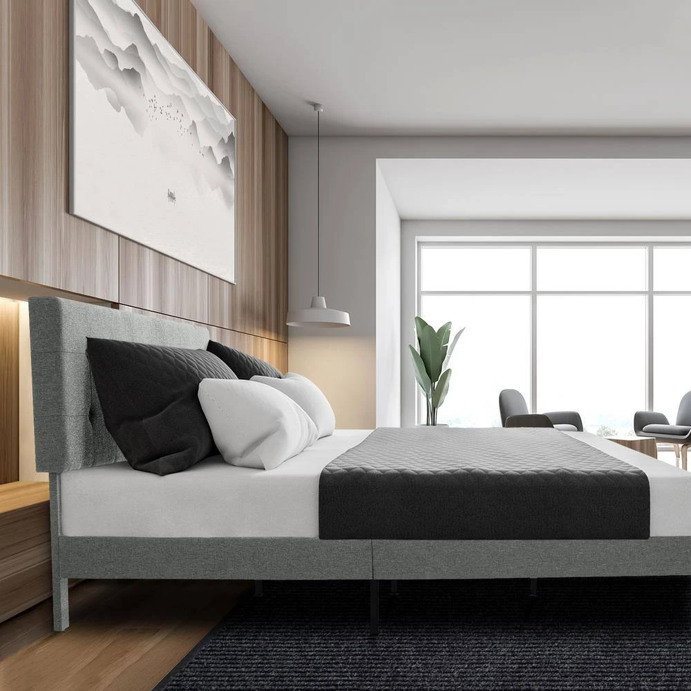 Alex Grey Twin Upholstered Platform Bed Frame With Headboard