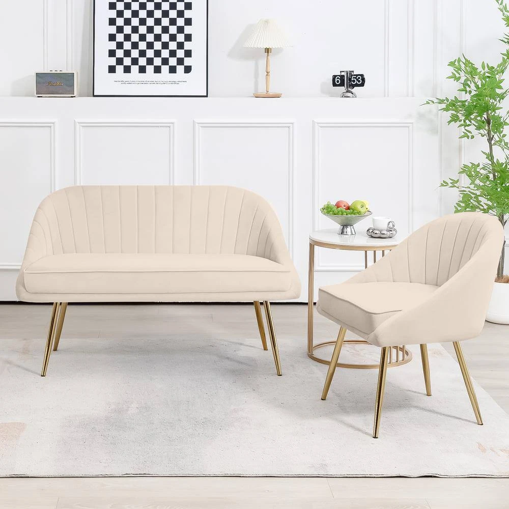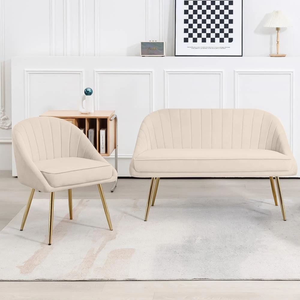 Atye 2 Piece Beige Living Room Velvet Loveseat And Accent Chair Set