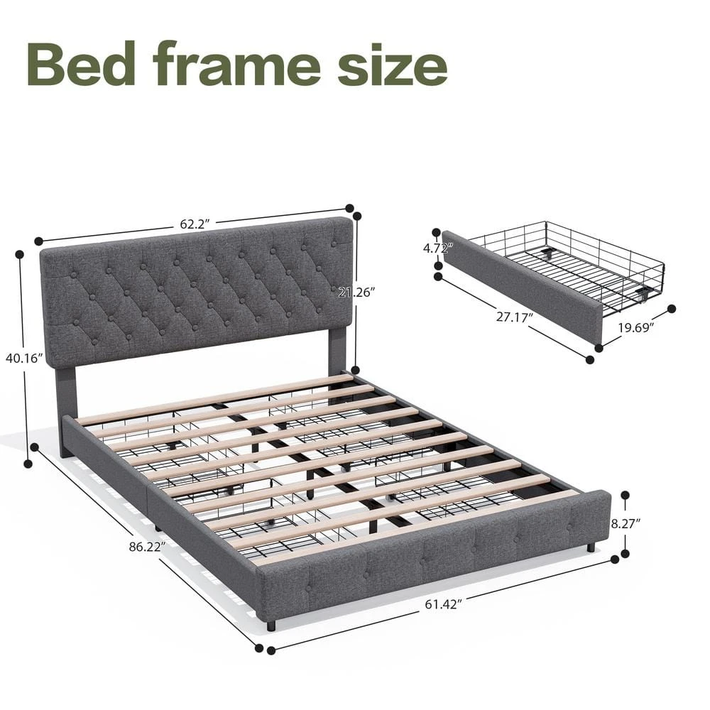 - Resilient foam: The foam does not sag and conforms to the body, creating a comfortable and private sleeping space; the elegant tufted look makes this queen-size upholstered bed with headboard easy to match with a variety of decors.