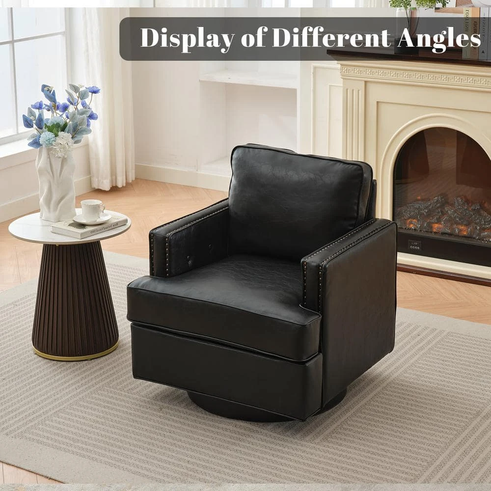 Black PU Leather 360° Swivel Nailhead Trim Button-tufted Accent Arm Chair With Cushion