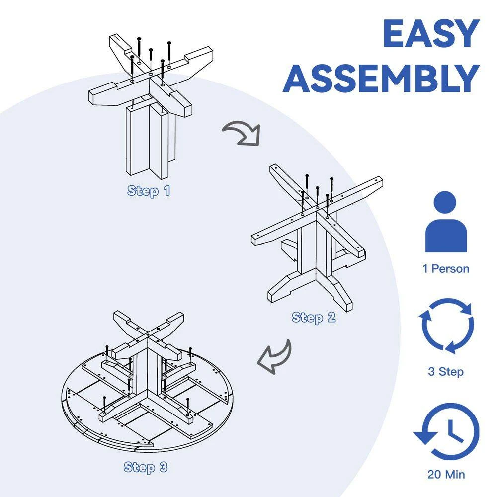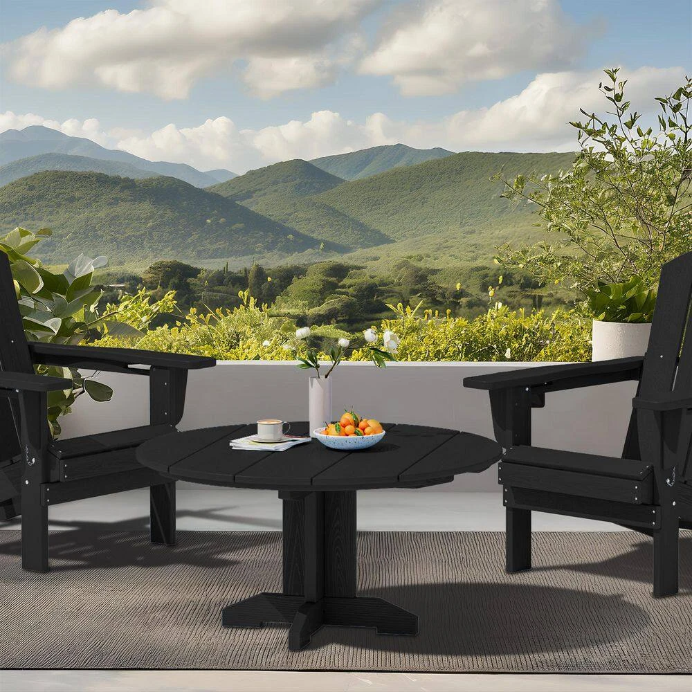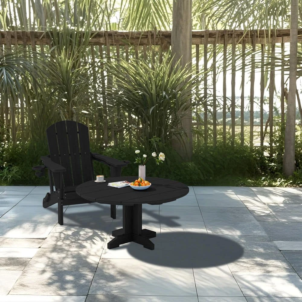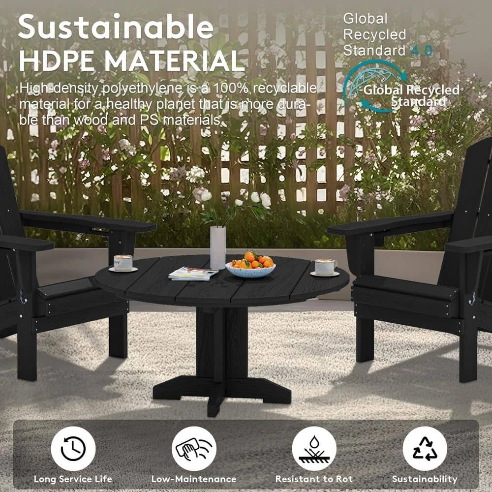Black Round HDPE Conversation Coffee Table, Weather Resistant Outdoor Dining Table