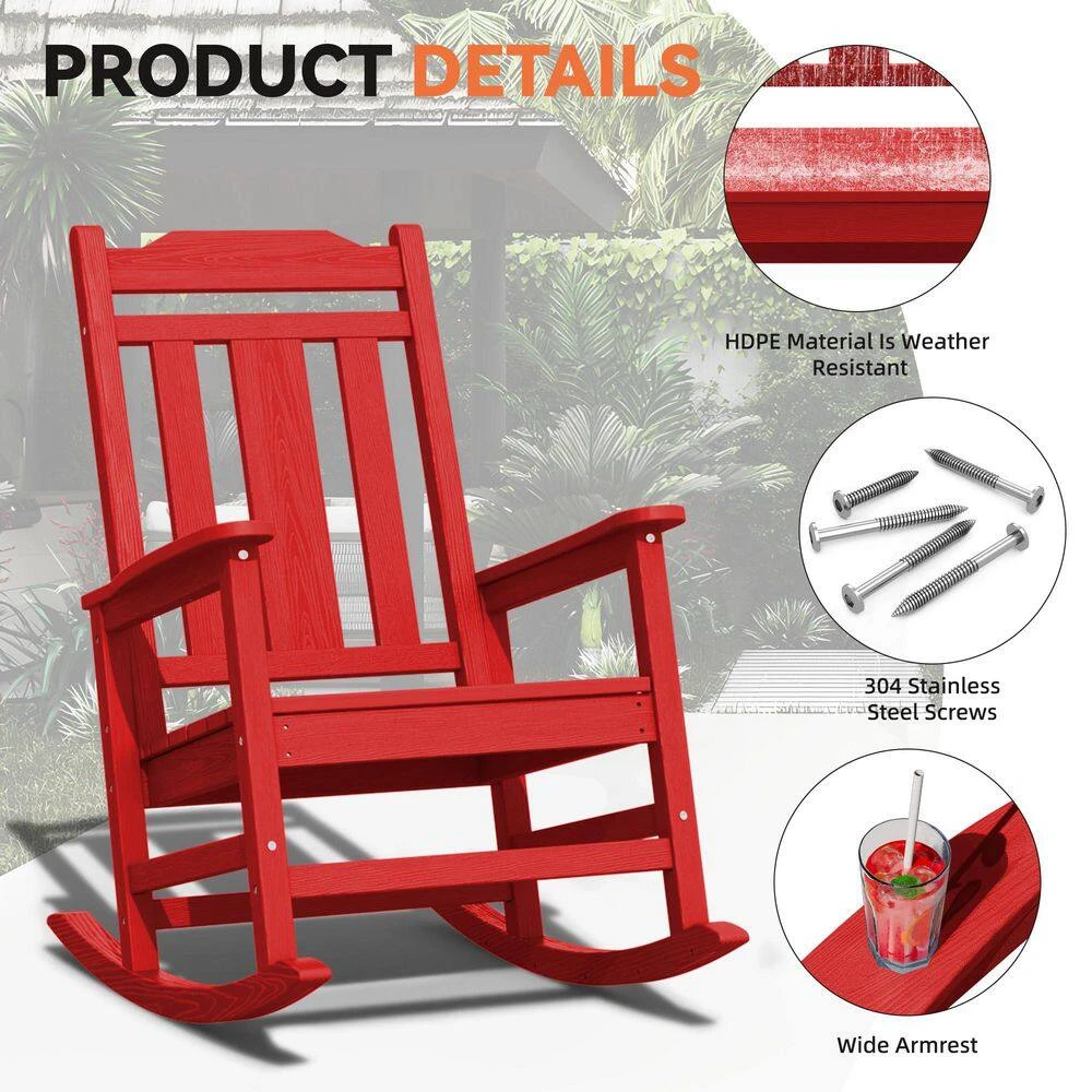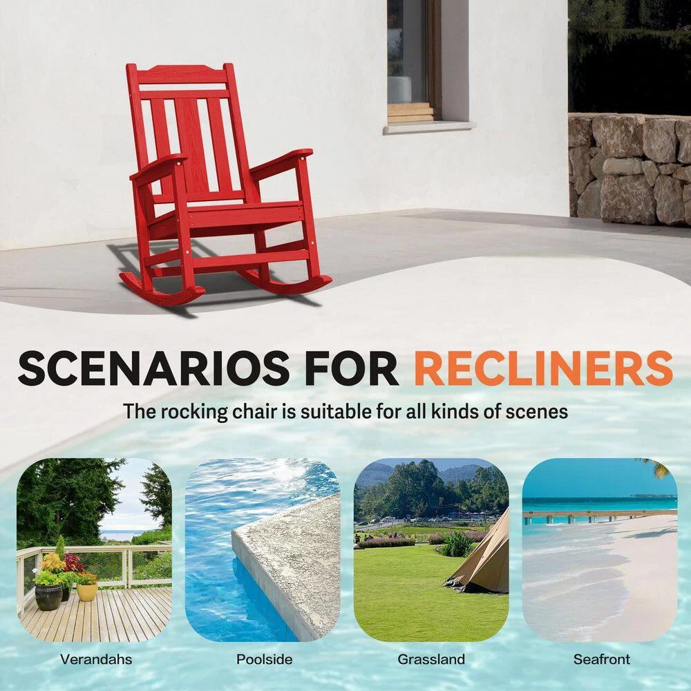 - Colorful Options: Our diverse range of colors allows this rocking chair to blend seamlessly with a variety of outdoor decor styles, while also allowing you to express your individuality.