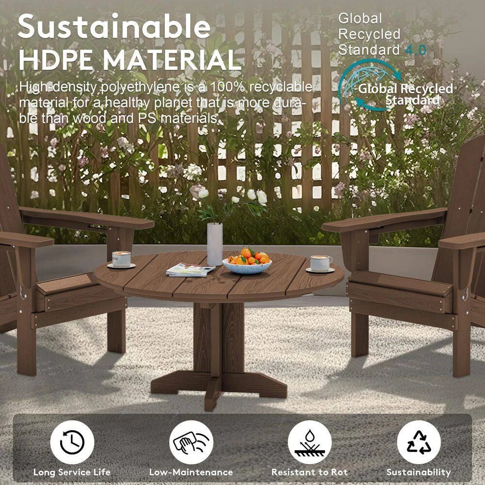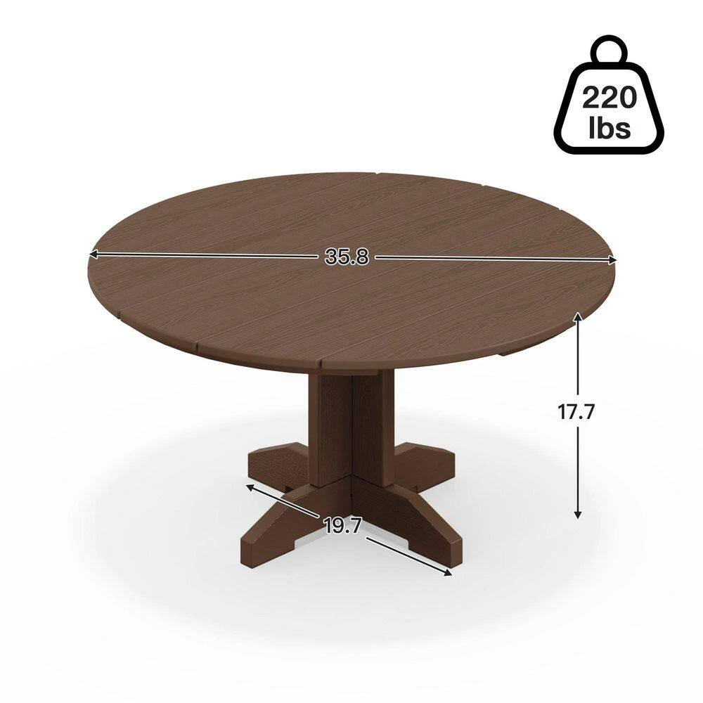 Brown Round HDPE Conversation Coffee Table, Weather Resistant Outdoor Dining Table