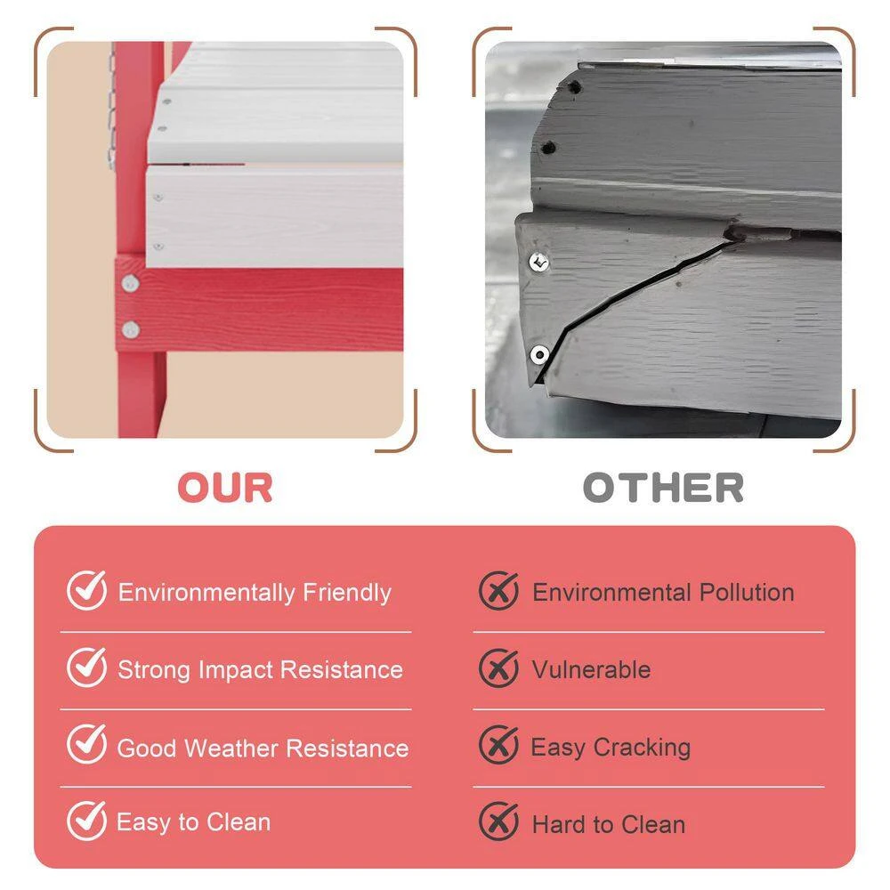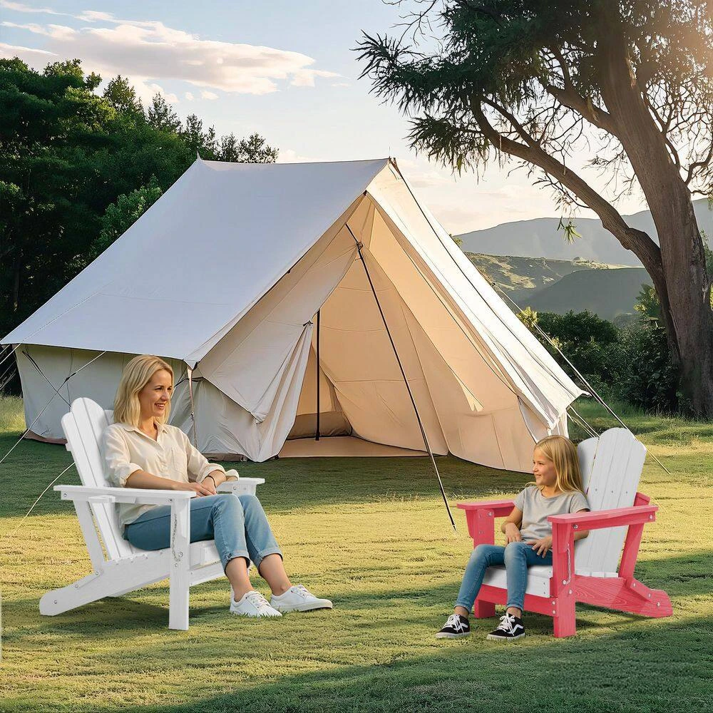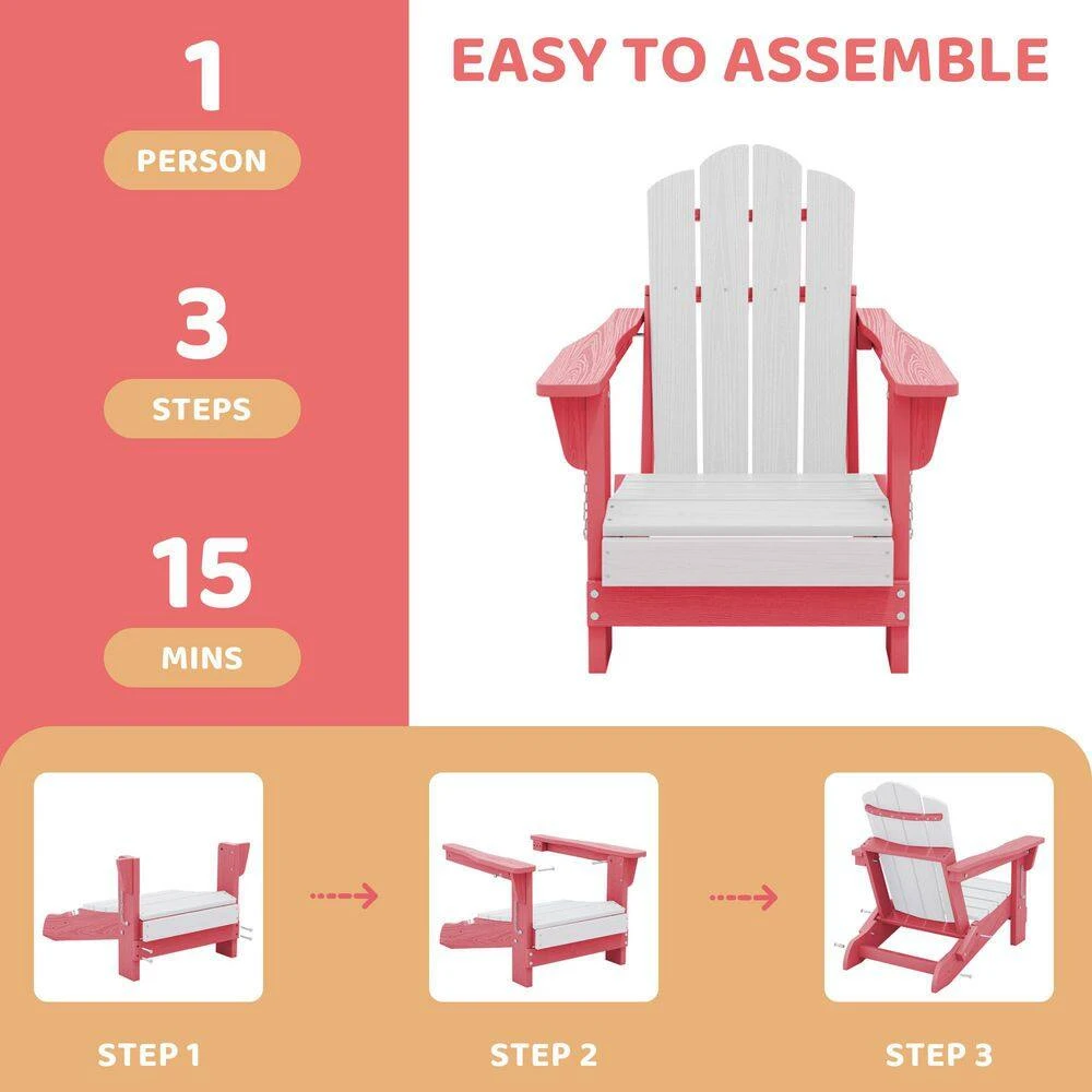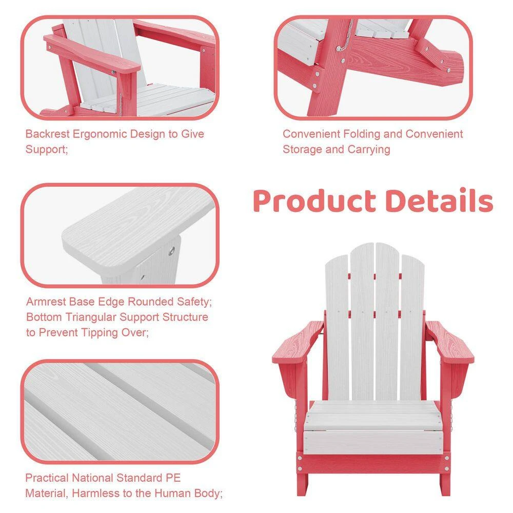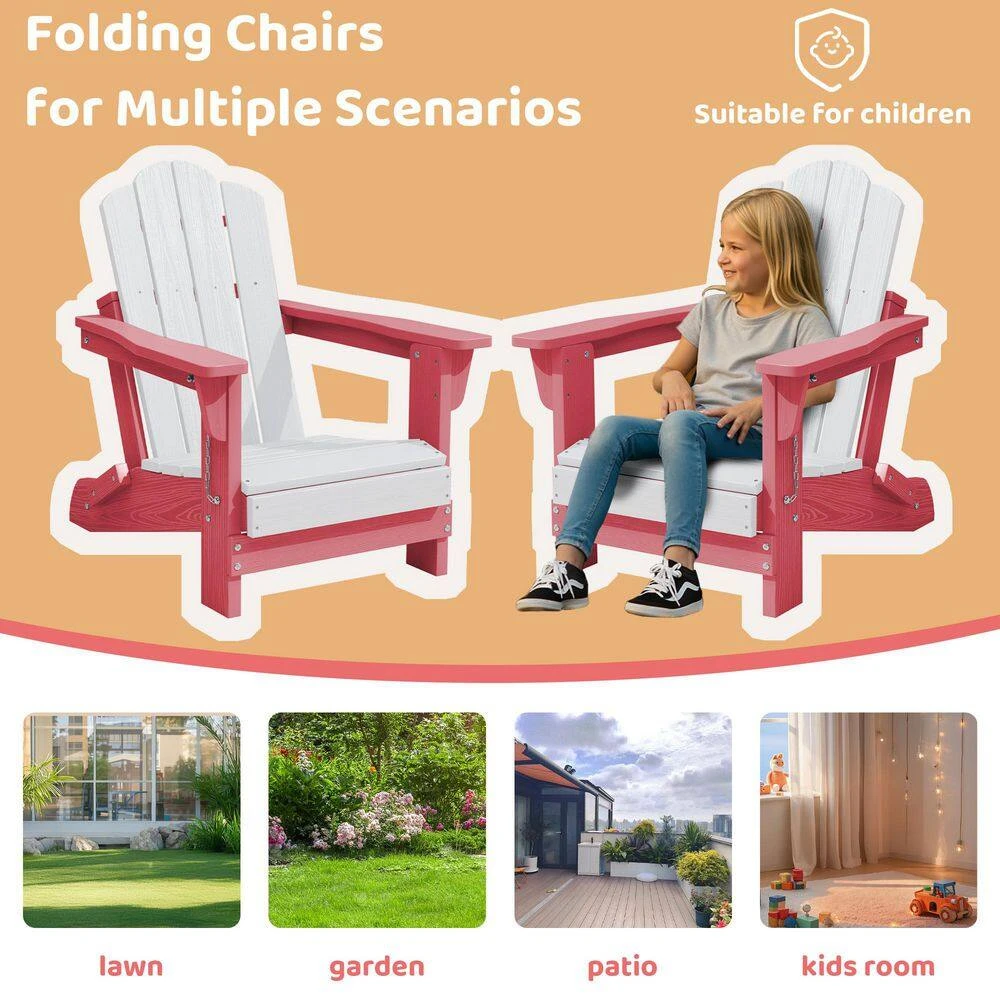 Children HDPE Folding All-Weather Adirondack Chair With Ergonomic And Safe Design, Pink/White